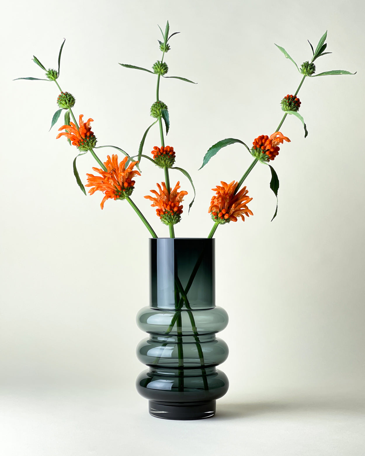 Create a bold floral display in any room with this modernist ring vase. This dark grey vase is a real colour enhancer for any flower.