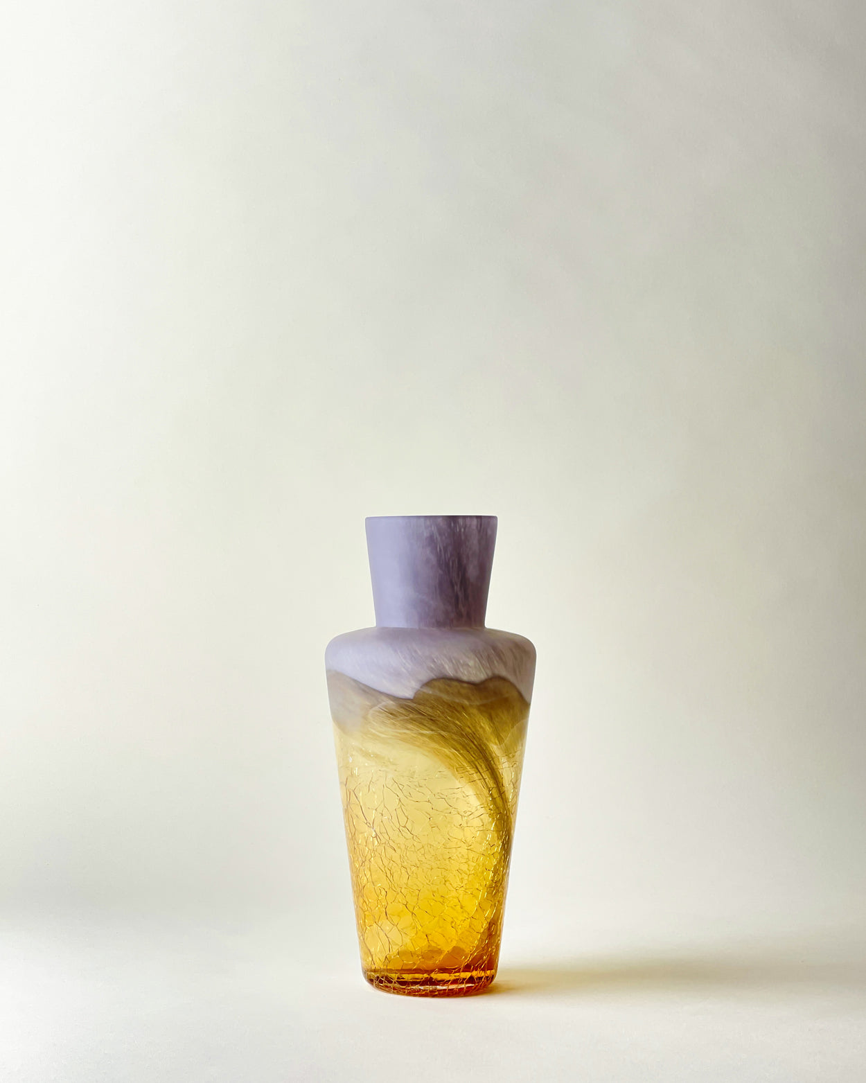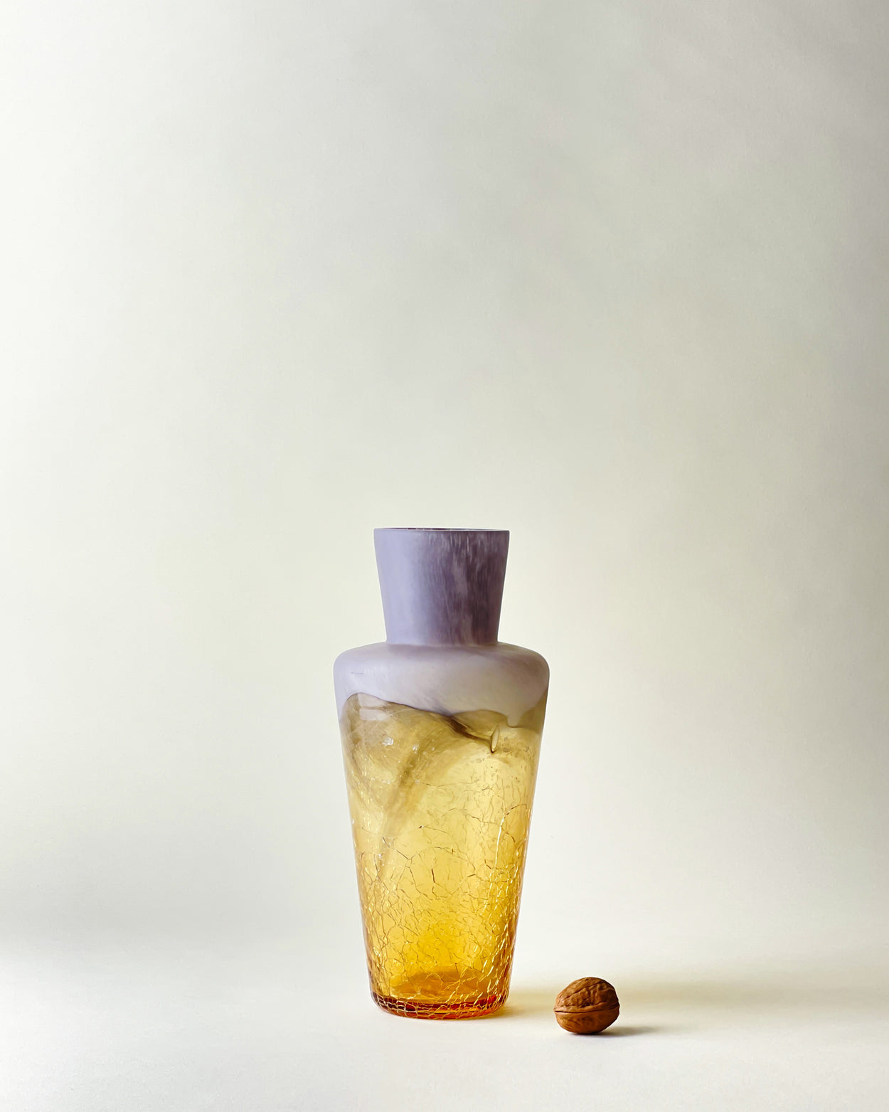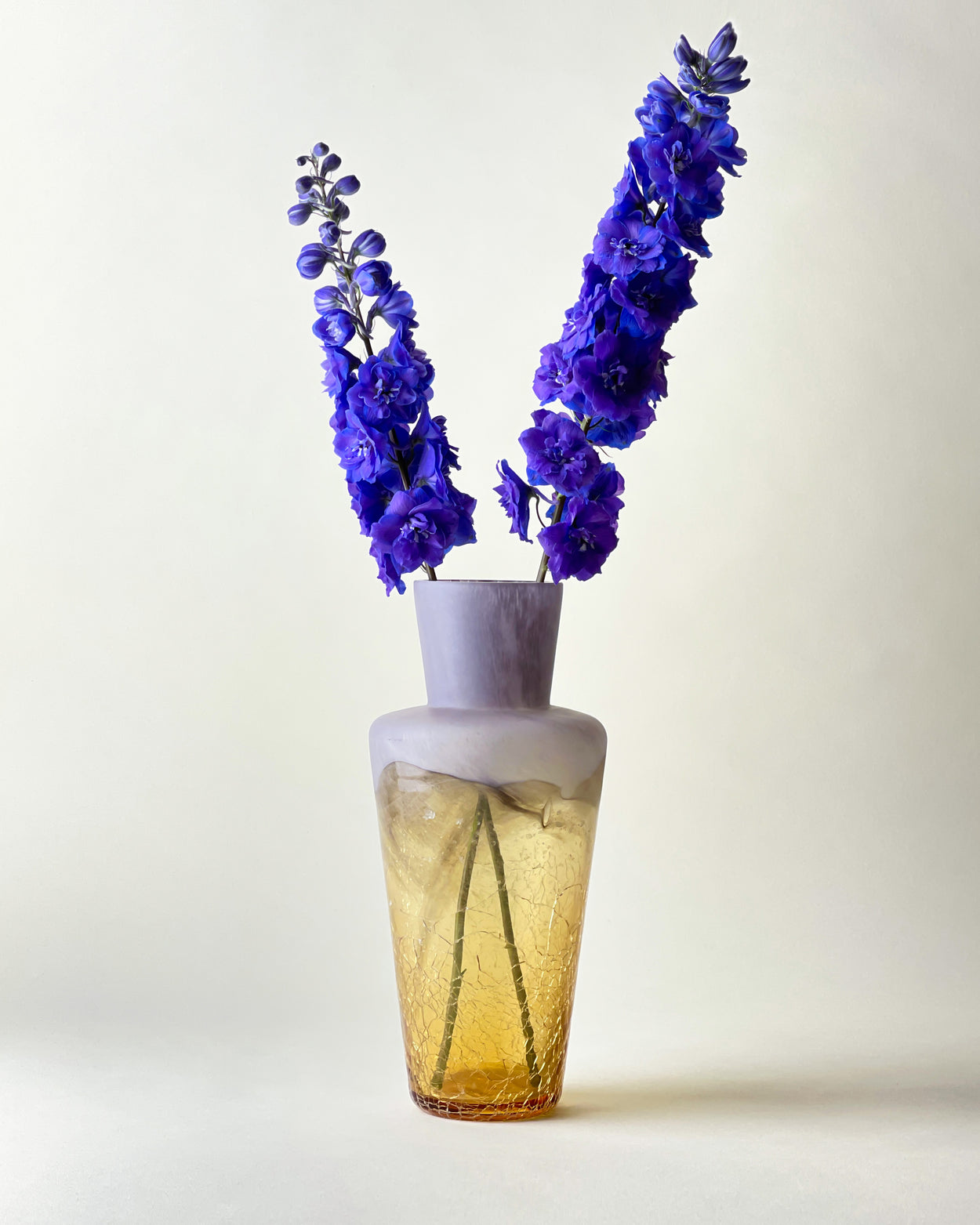 This magical crackle glass vase will surely give any floral display some good vibrations.