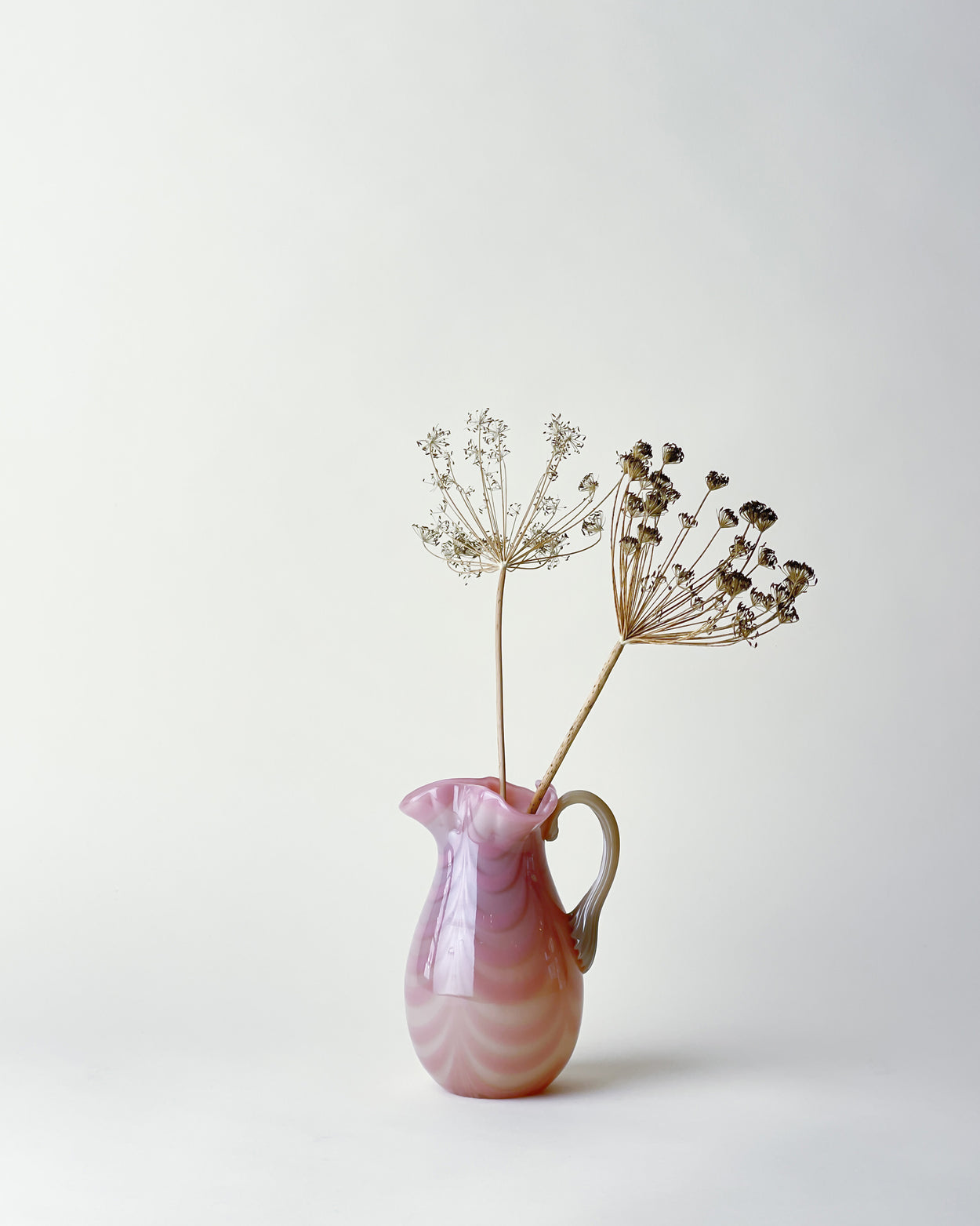 Lovely vintage pinky pitcher with ruffled top. Perfect item for a soft and elegant touch of colour in your Interior.