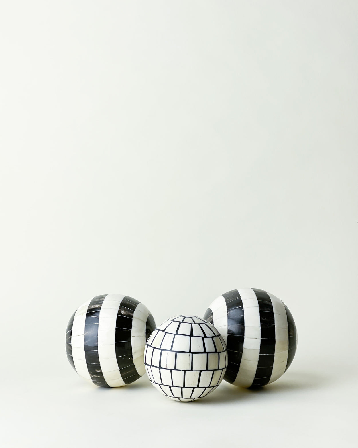 Add a dash of class to your interior styling with these decorative bone and horn inlay balls. The monochrome toned balls will go superbly with any colour theme in your living room. Even more so when you style them together with one of our fabulous black and white treasure boxes.