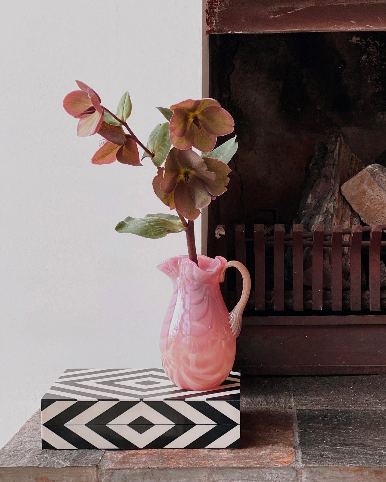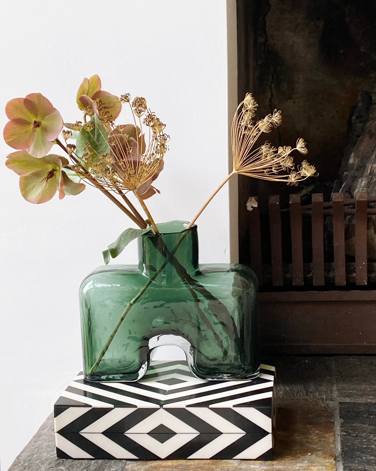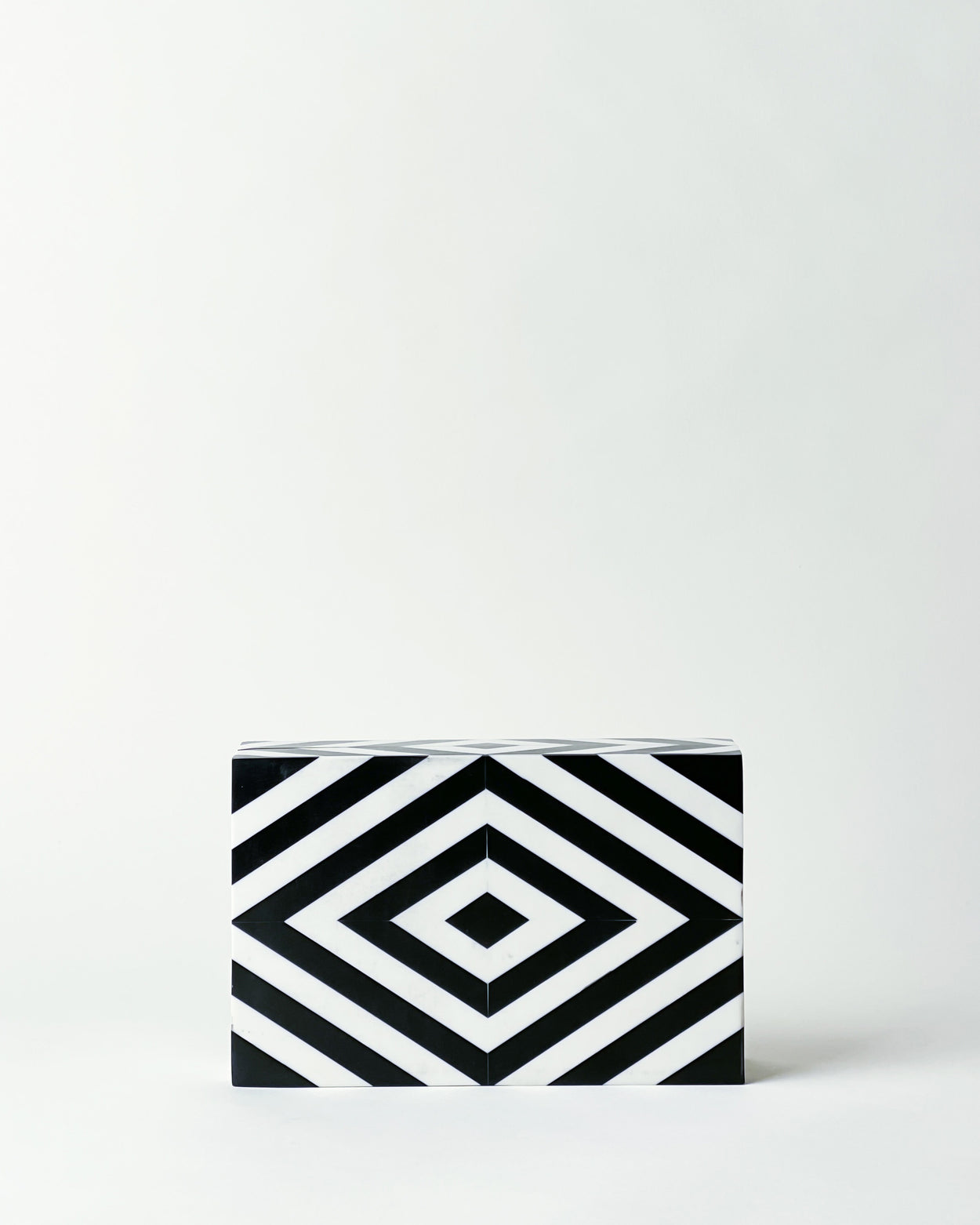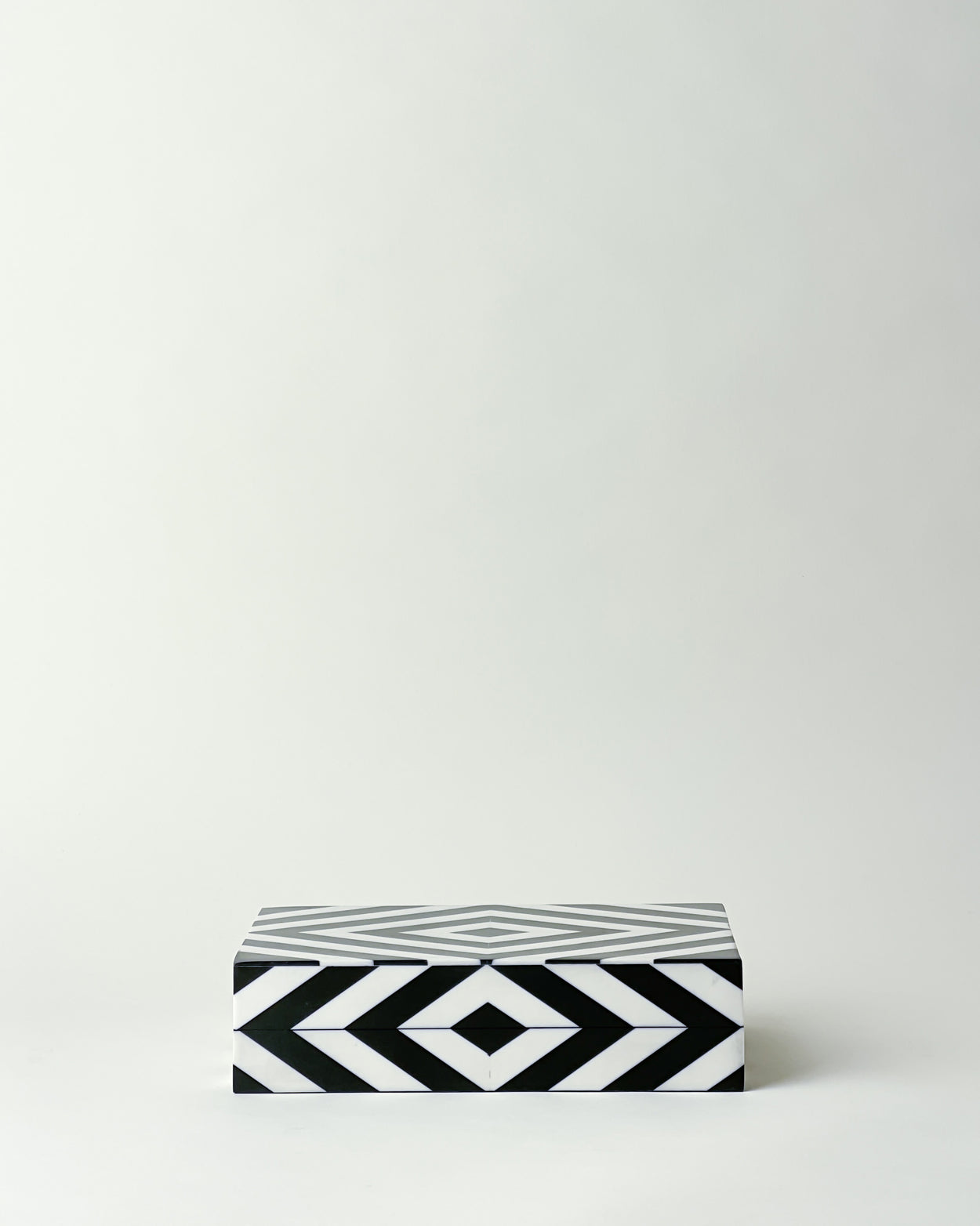 This fabulous black and white herringbone inlay Jewelry Box immediately attracts the eye with its symmetrical geometric pattern. Very decorative object to keep all your personal little treasures safe. An absolute stylish addition to your lounge, dining room or bedroom.