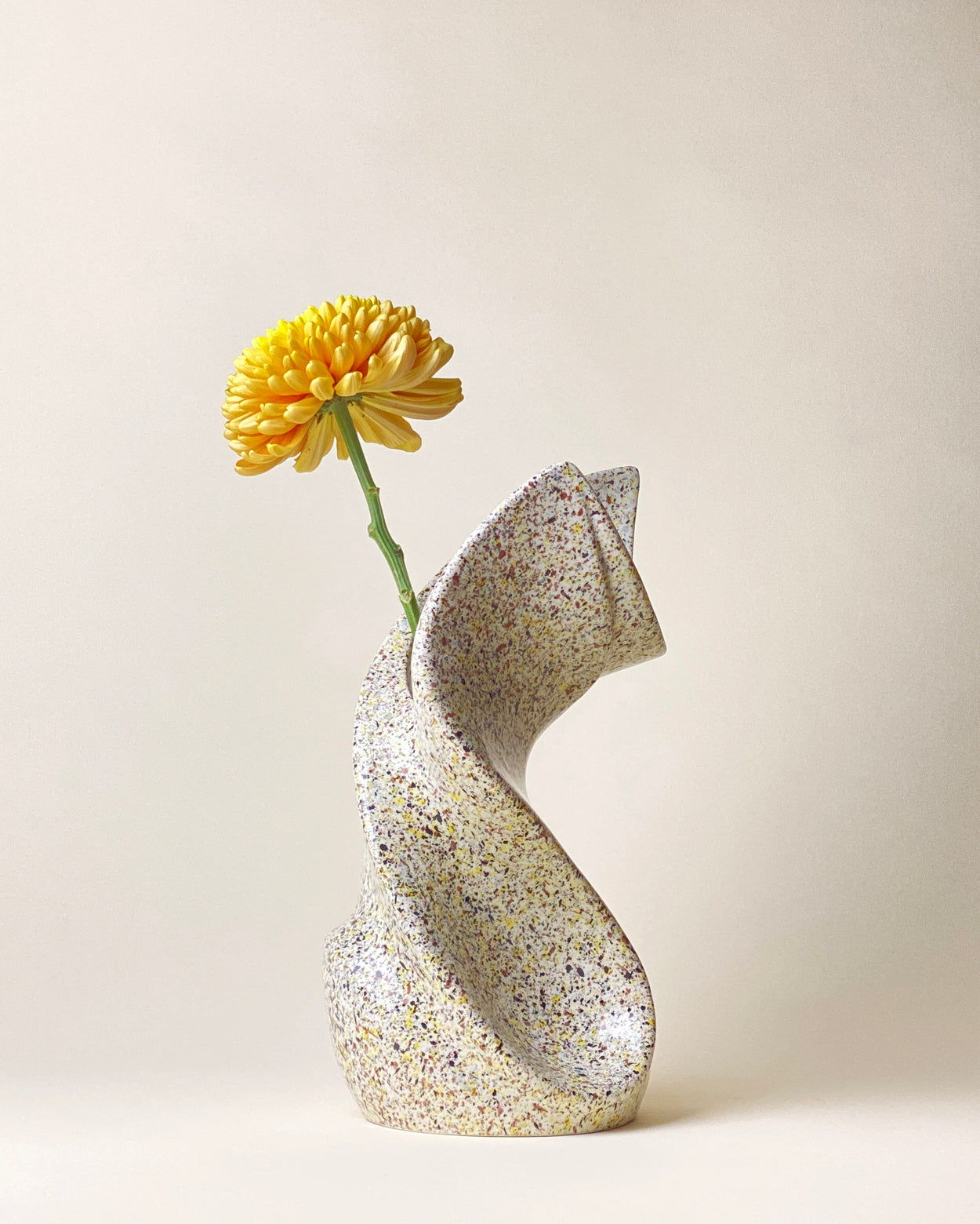 This vase by Roberto Rigon for Bertoncello is perfect for the collector of Italian ceramics, midcentury ceramics or modernist sculptural ceramics. Typical for Rigon is the combination of form and function, at the same time sculpture becomes a vase. Presumably made in the 60s, with the classic Bertoncello glaze. Stamped with a raised "RR" on the bottom for Roberto Rigon.