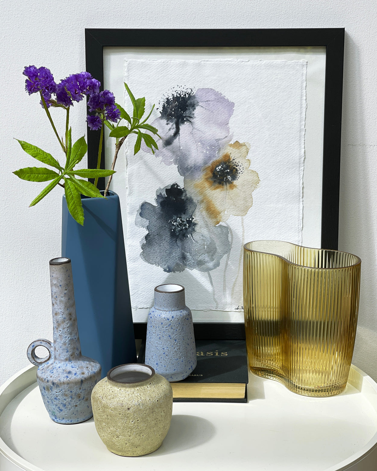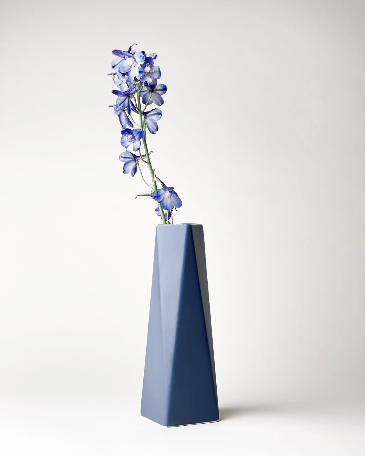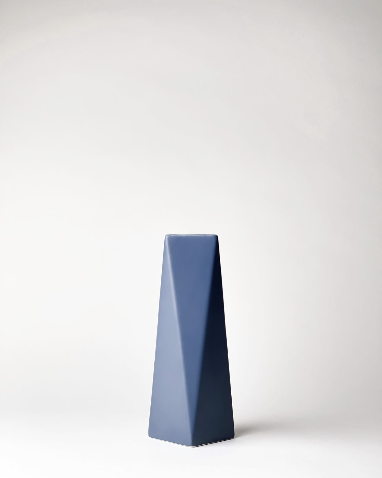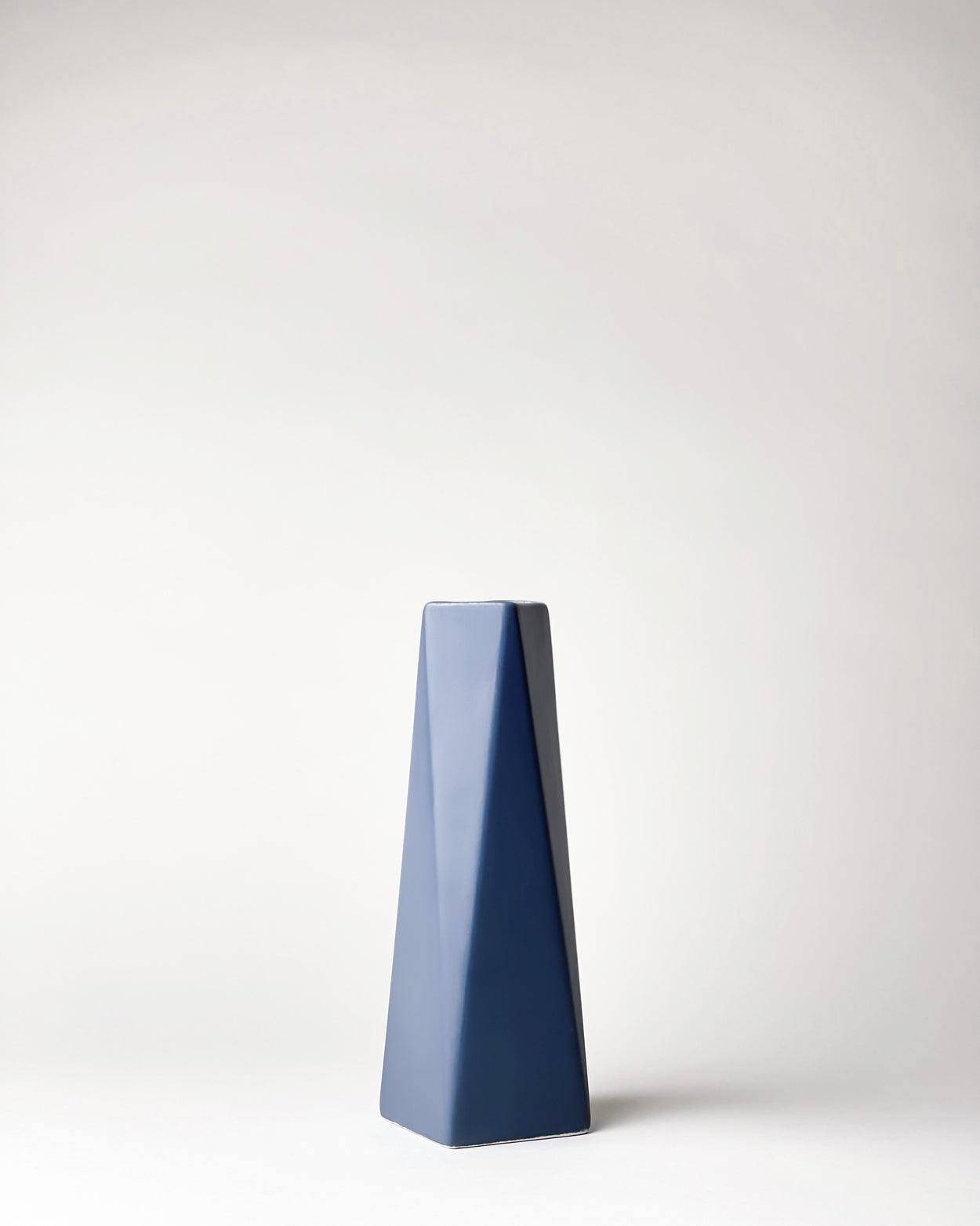Elegant architectural pillar shaped vase. Mid Century Modern. Matt Royal Blue glaze.