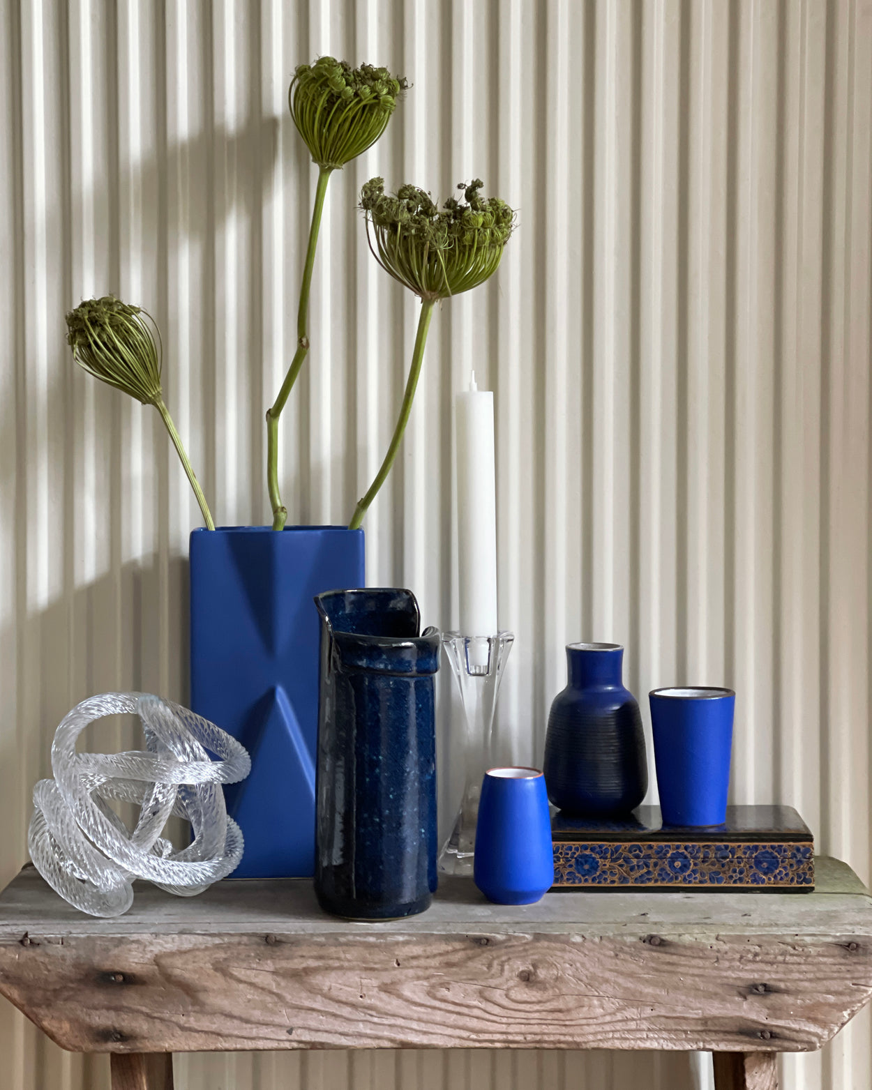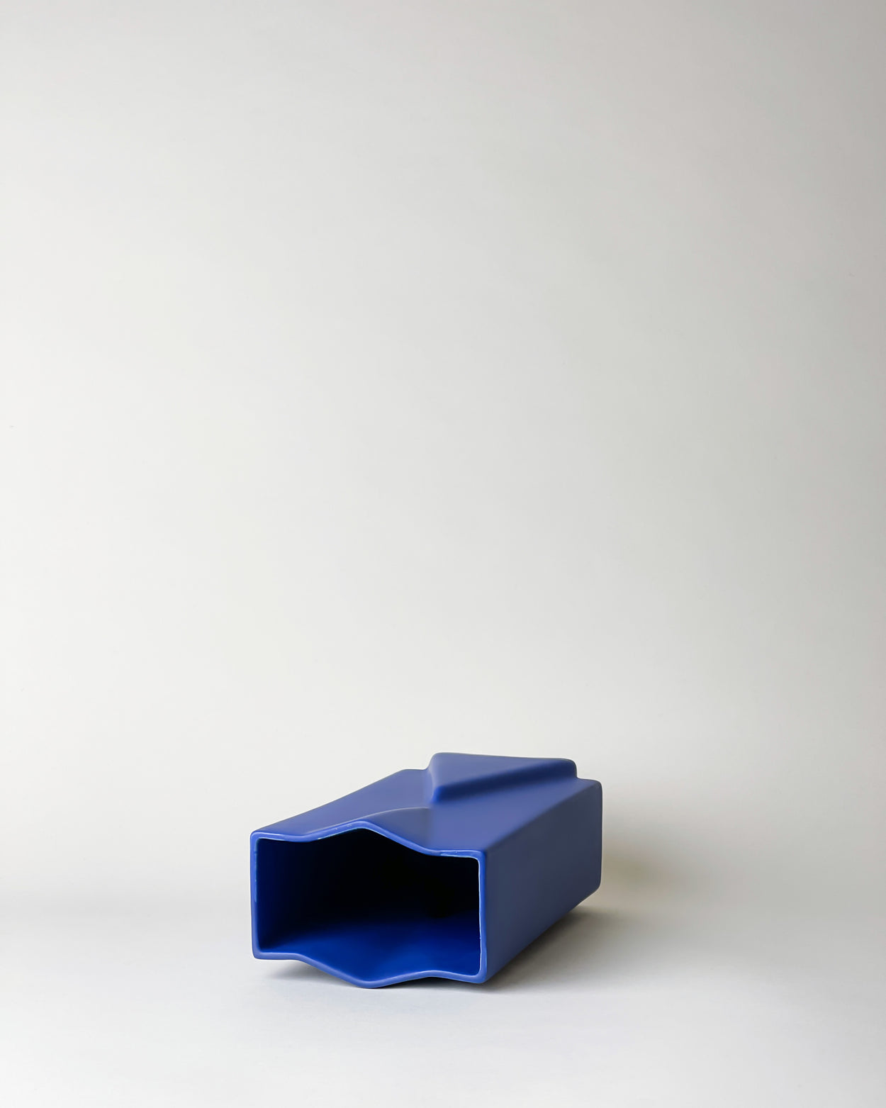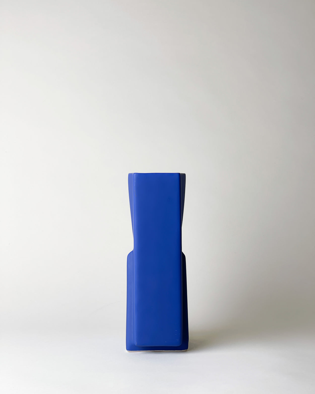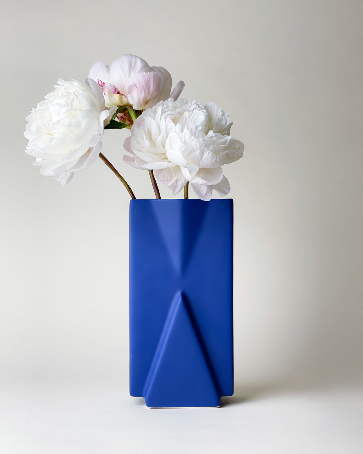 Spectacular 3D geometric shaped vase in matte cobalt blue glaze. An absolute colour booster for your Interior. Unique styling object, with or without flowers.