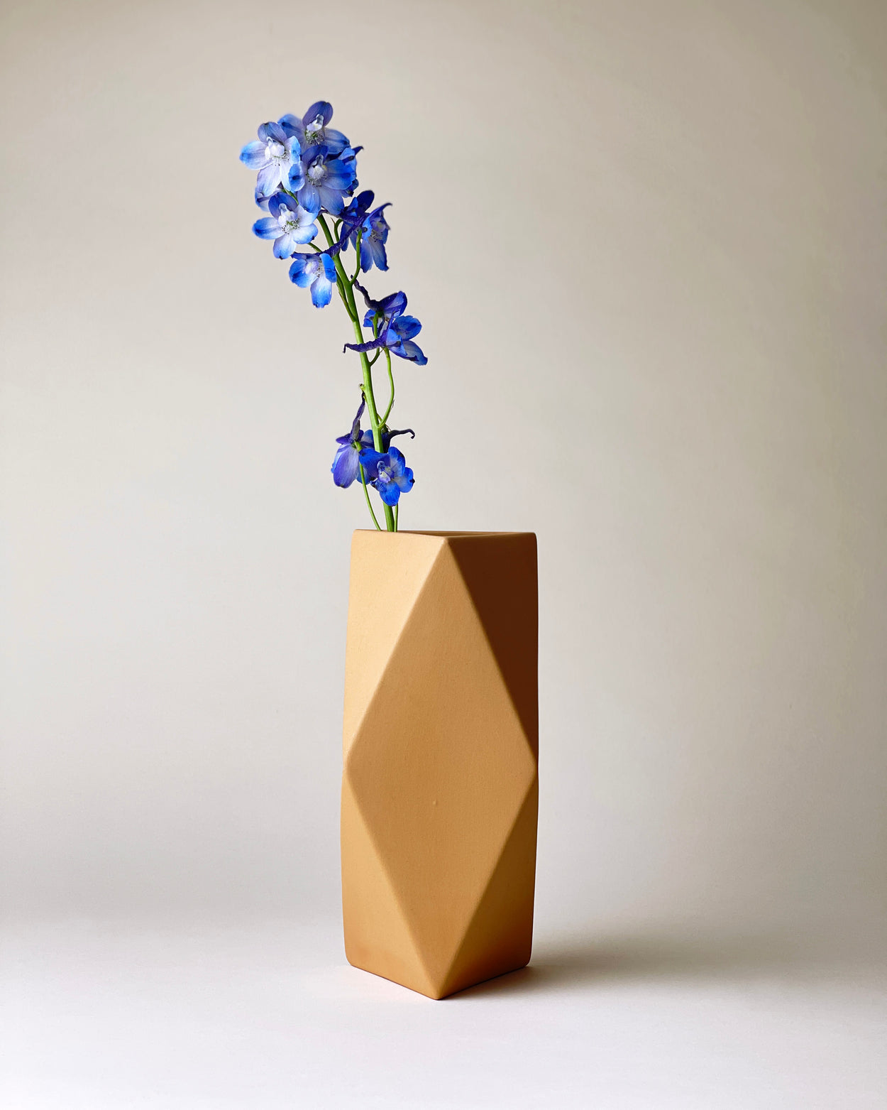 Cool origami shaped vase. Every side has a different perspective. Matt structural glaze.