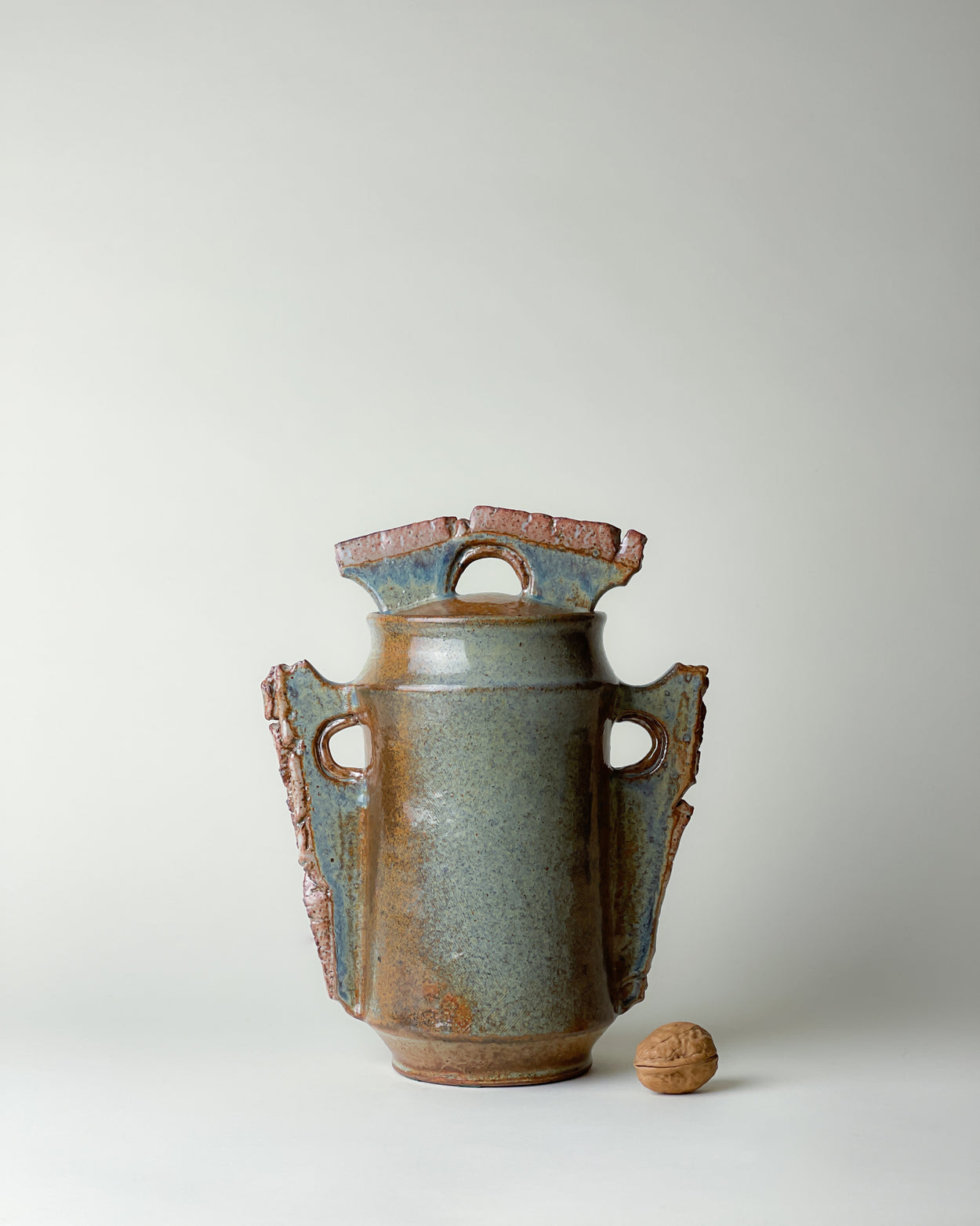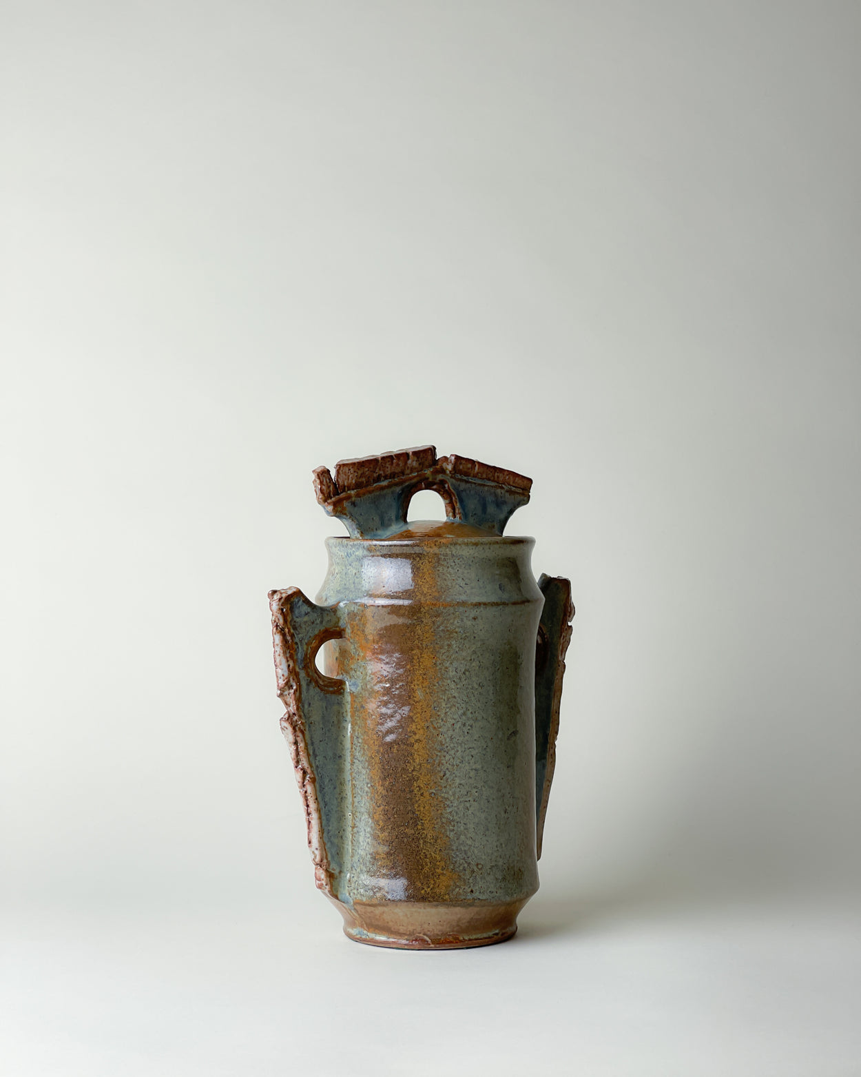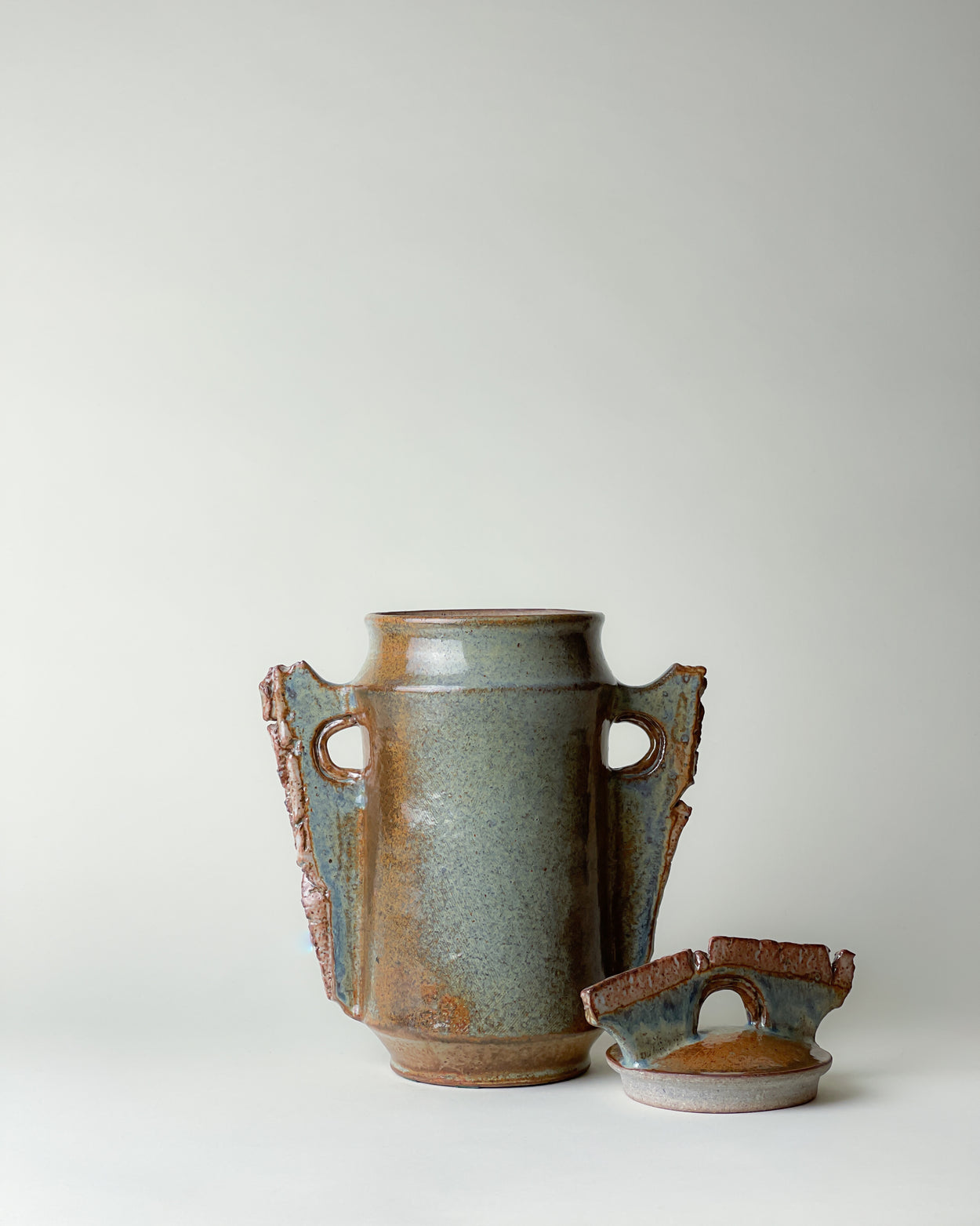 Wonderful decorative jar with lid in magnificent duotone glaze. Handmade by Harriet de Maar-Sielcken around 1989. The work is signed on the bottom with: "HARRIET DEMAAR". Harriet, also known as Jet, de Maar-Sielcken (1929-2015) was a Dutch ceramic artist born in Indonesia. From 1956 to 1958 she was part of the Experimental Department of the Porceleyne Fles in Delft. This authentic and unique, jaw-dropping gallery piece, will take a lead amongst your other interior design items.