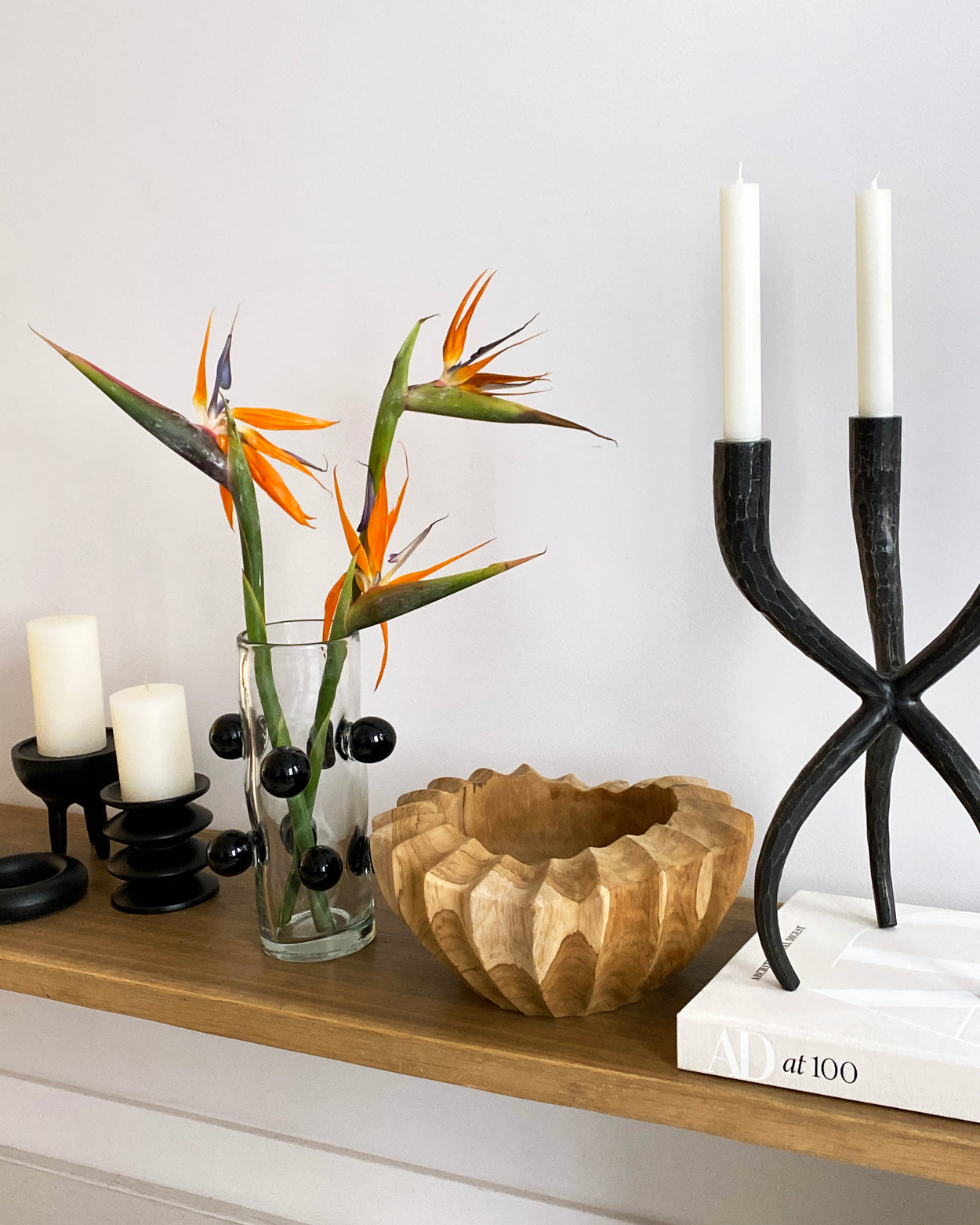 This massive tripod candle holder is a true eye-catcher in any interior. Perfect for creating authentic and dramatic table settings. Or elevate you favorite side table with this wonderful object.