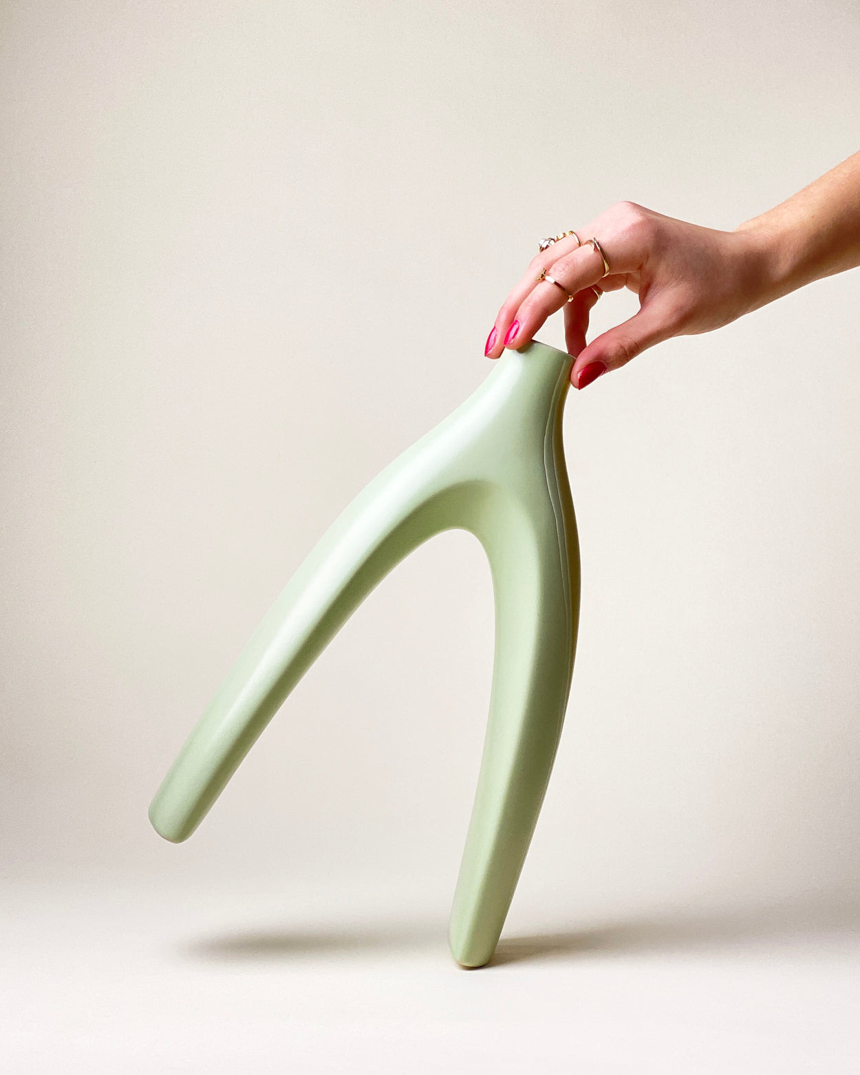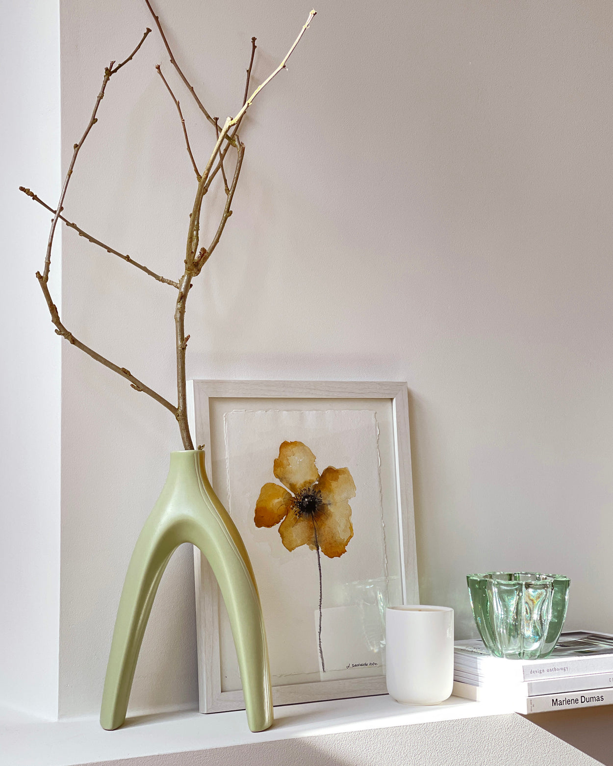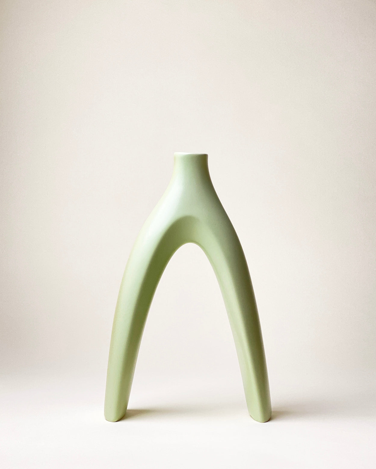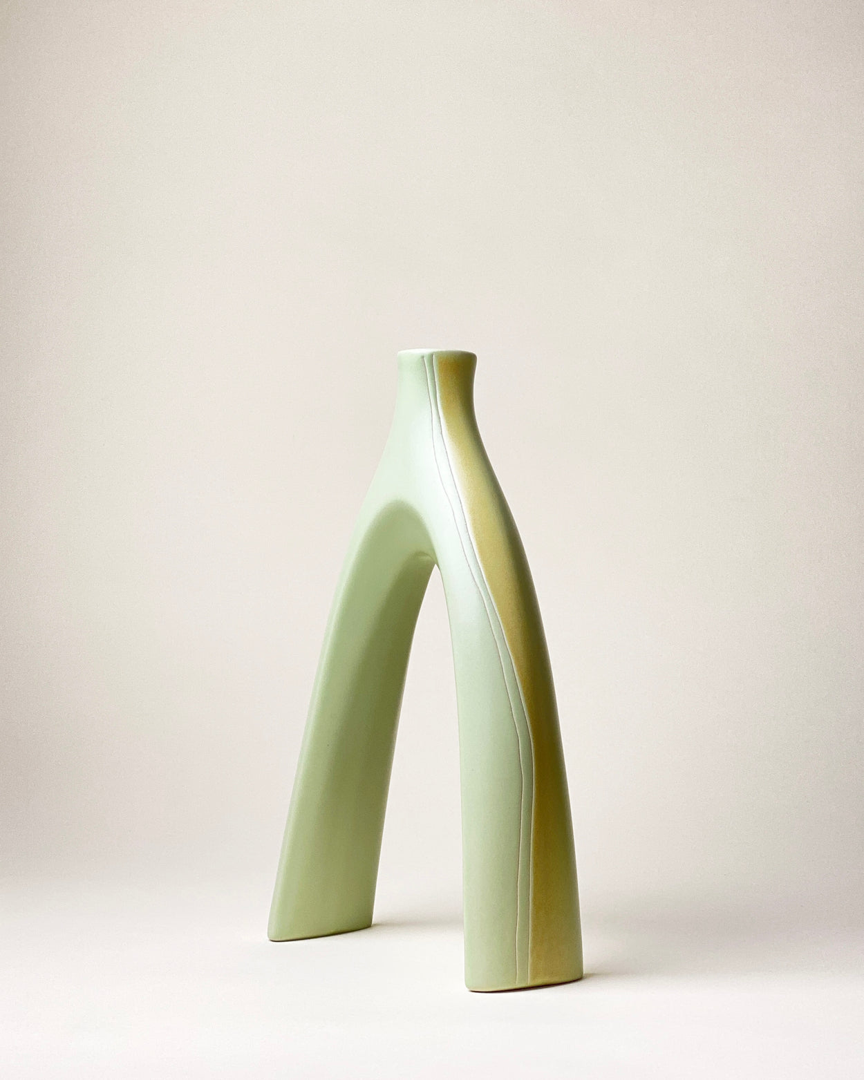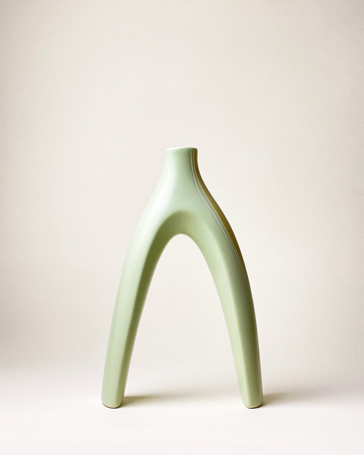 Beautiful Japanese Ikebana vase. Uniquely curved shape with pastel green colour. With or without flower, an absolute eye-catcher in your Interior!