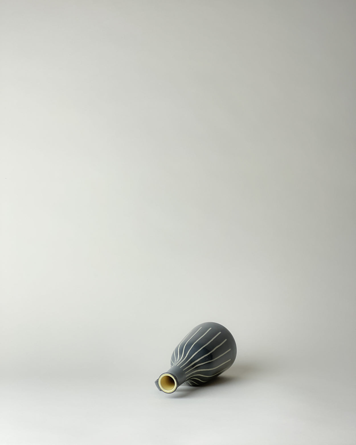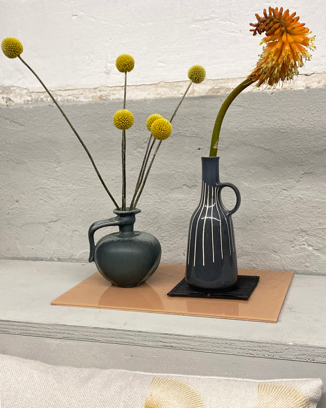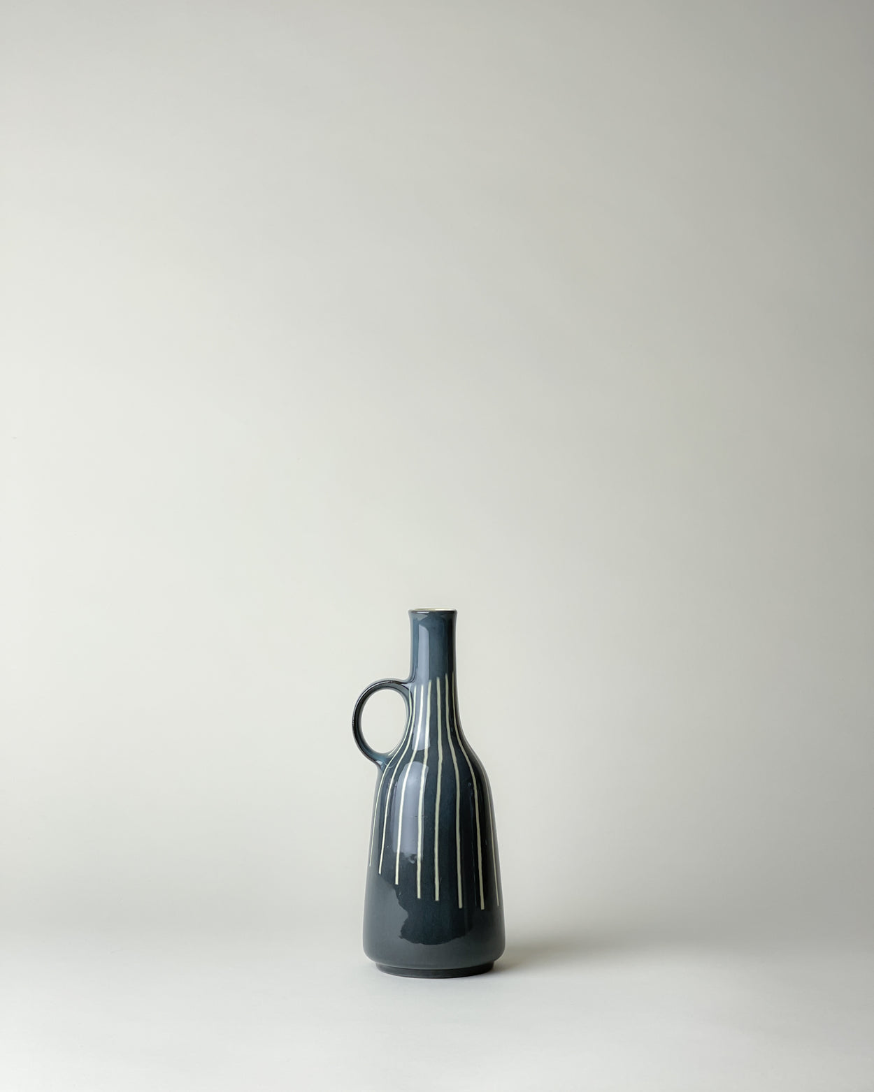Elegant and slim eye catching Dumler&Breiden pitcher vase with beautiful blue/grey glossy glaze. West German pottery with 1342 18 mark on the bottom.