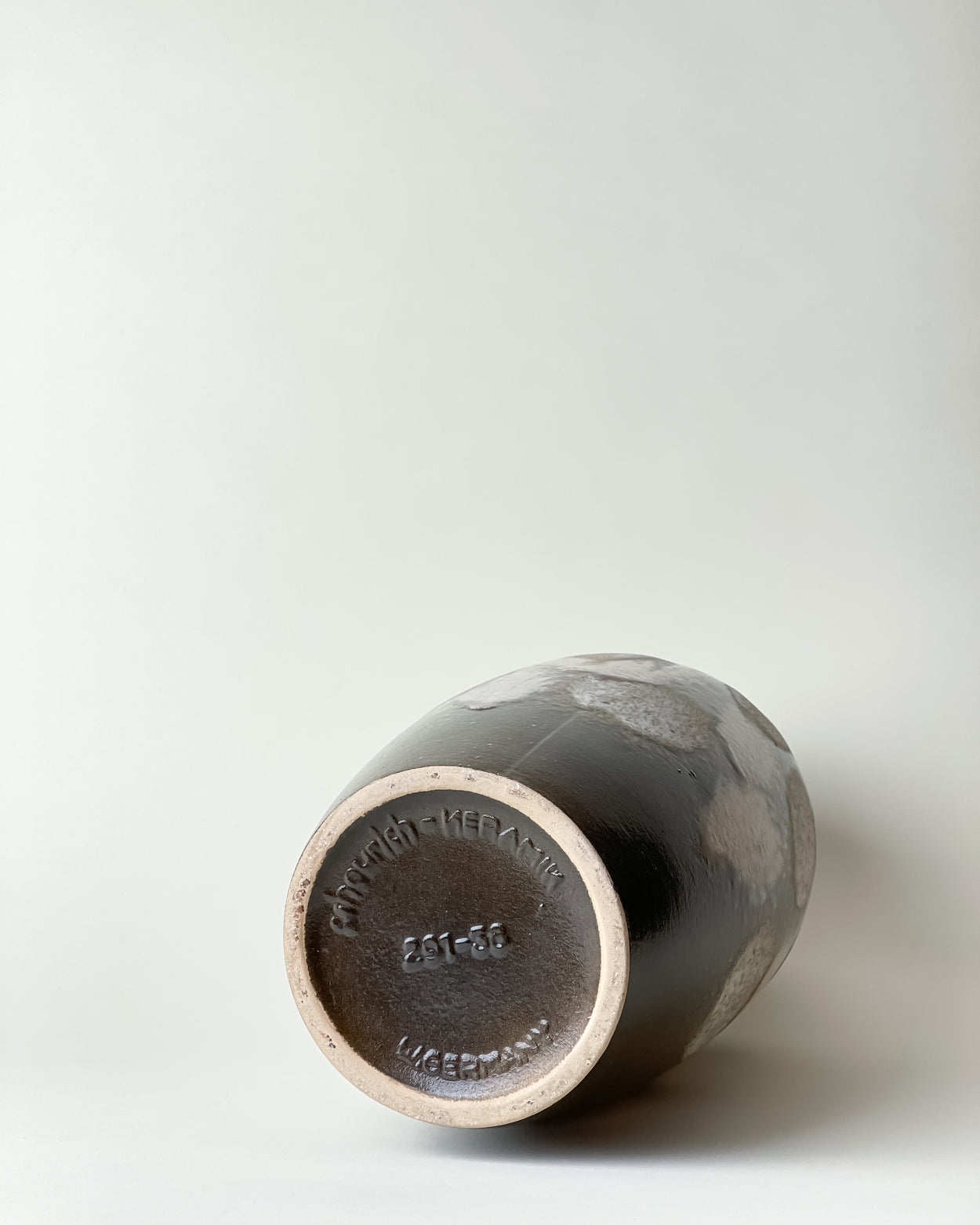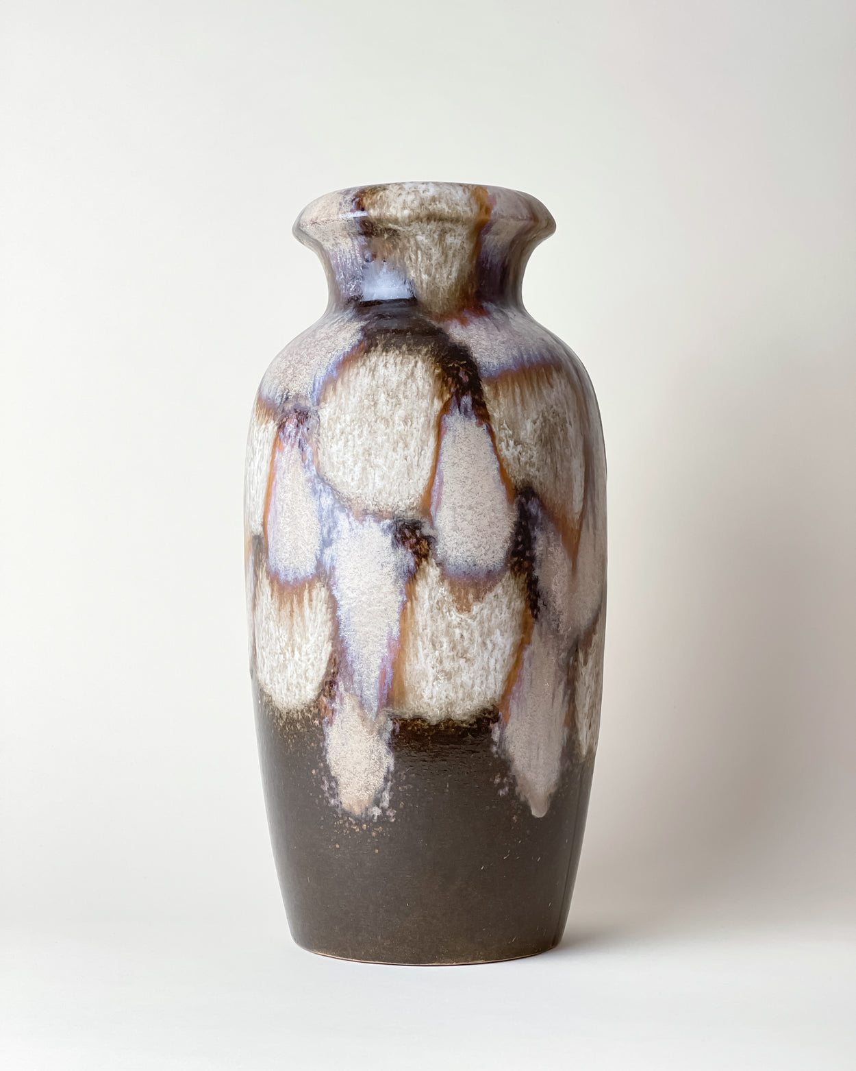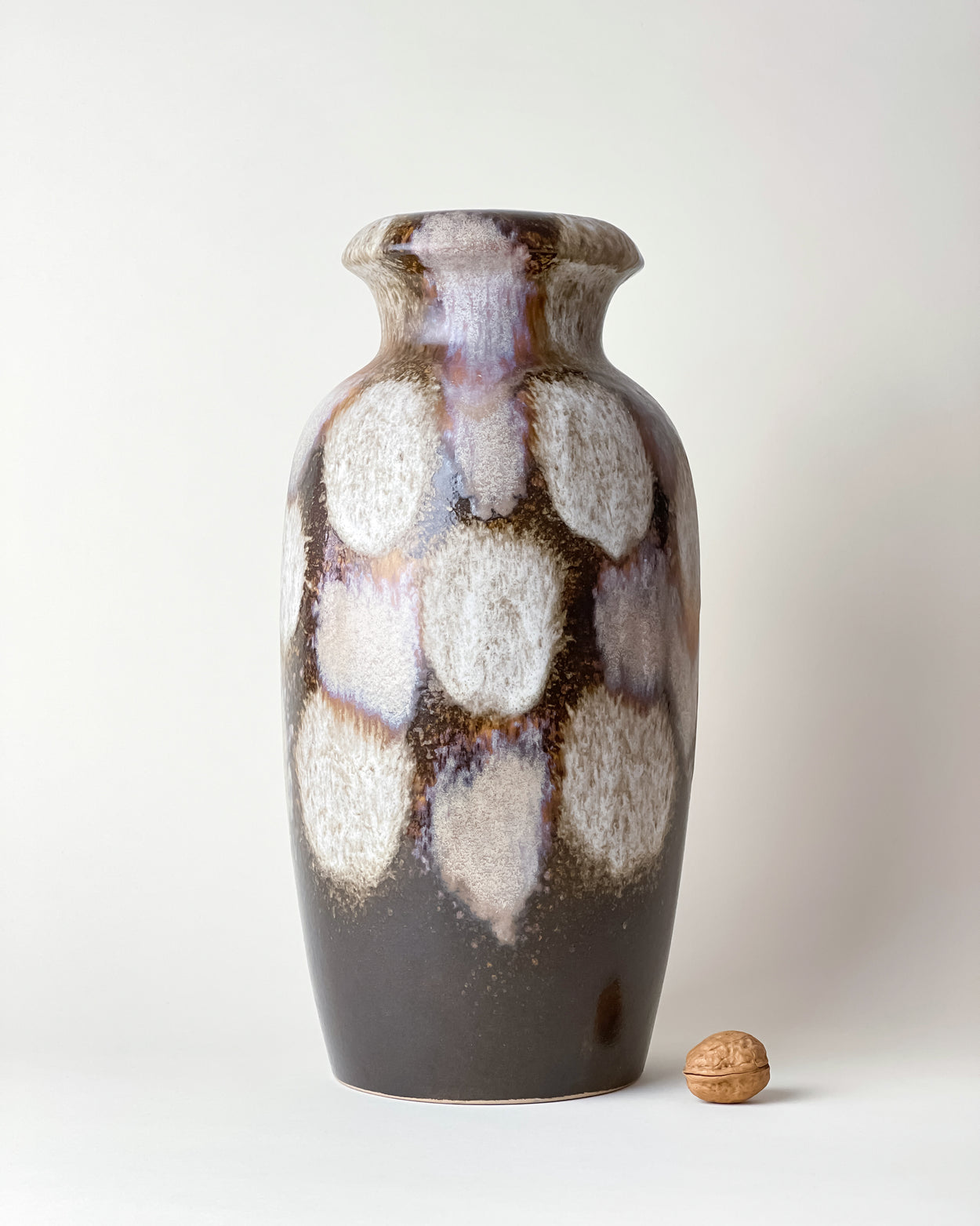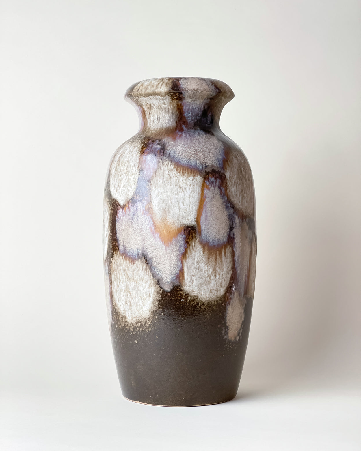 Stunning fat lava floor vase made by Scheurich in West Germany. Wonderfully glazed with brown and cream pattern. Will elevate your Interior Styling in a flash.