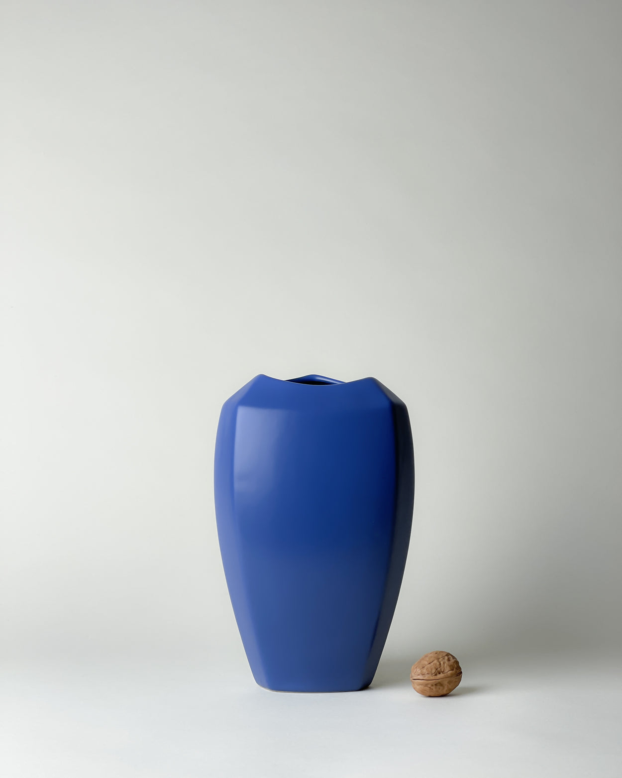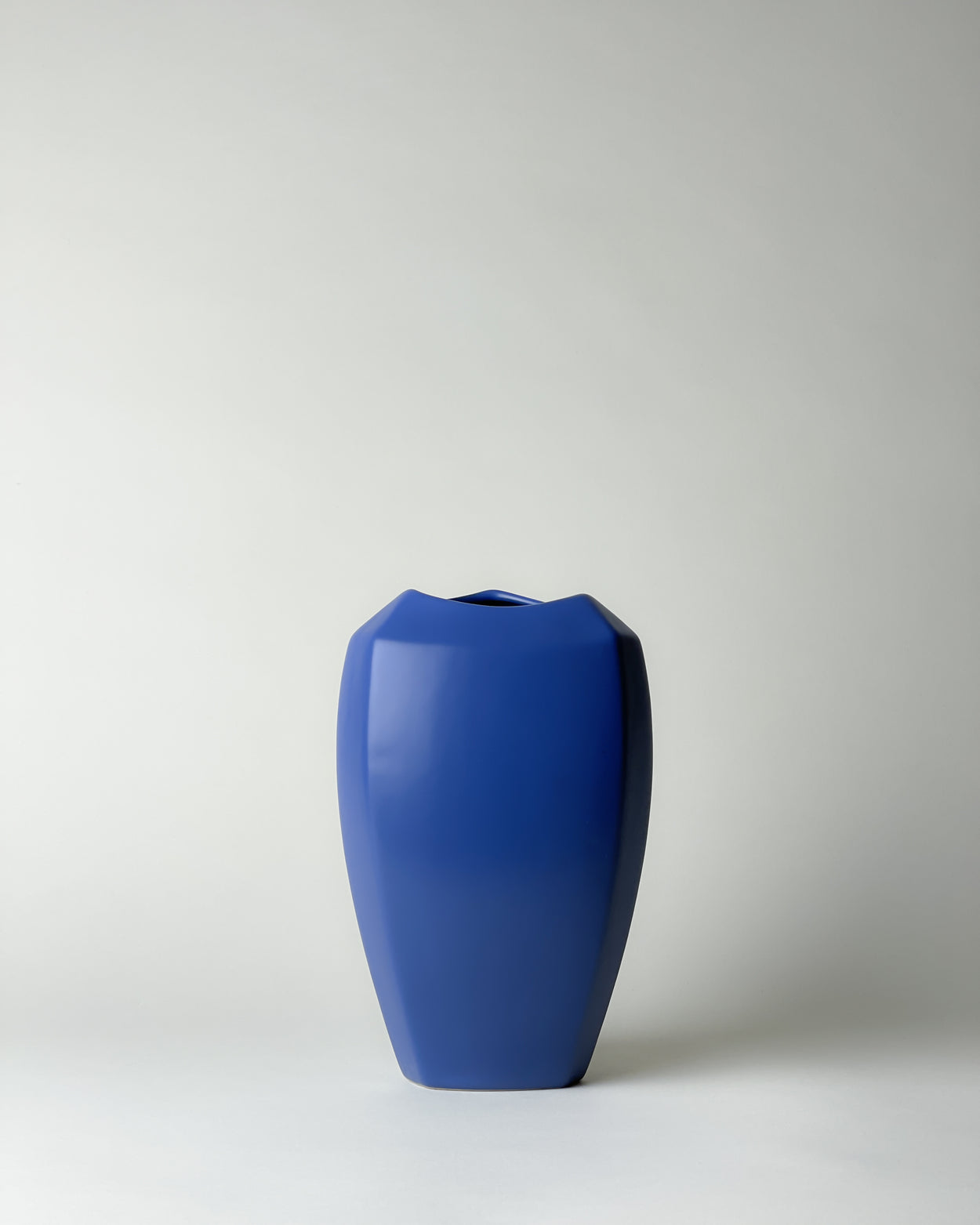 Wonderful radiant cobalt blue vase in modernist geometric triangle shape. This unique decoration piece will instantly colour boost your Interior.
