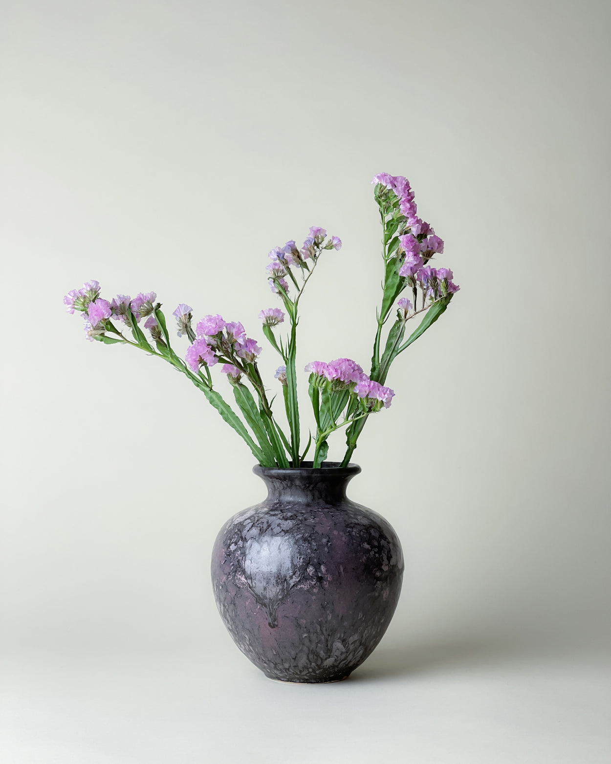 Elegant Ruscha ART Vase from the 60s. With fabulous purple-pink running glaze. This superbly shaped and glazed object will instantly lift your interior decoration.