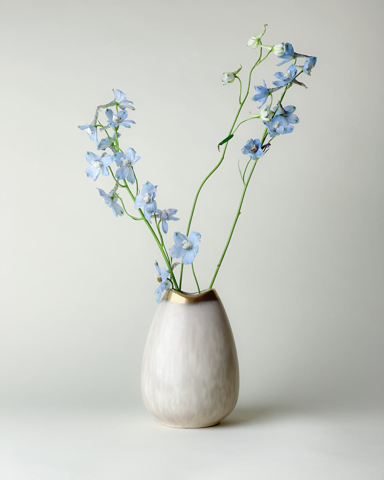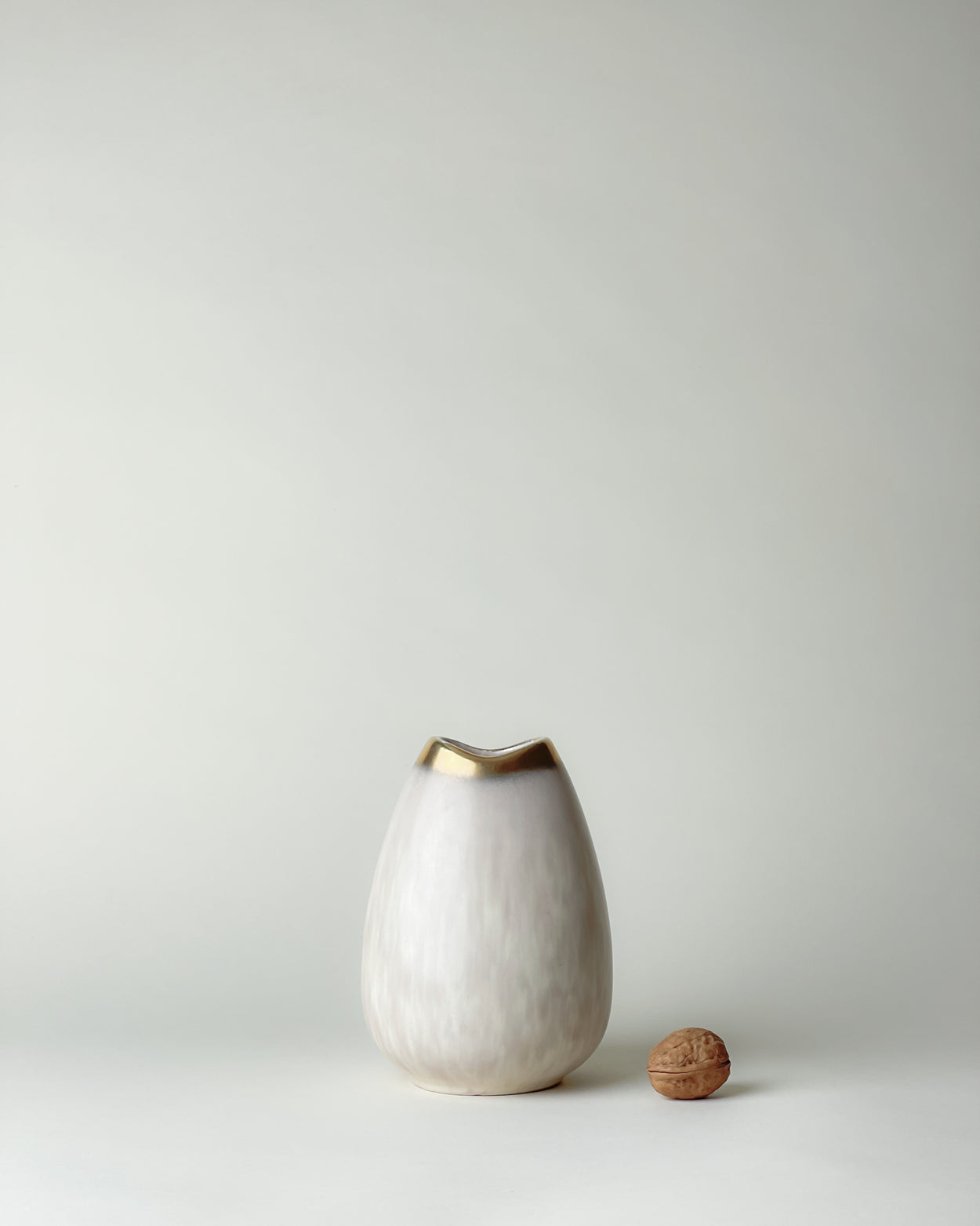 Lovely Jasba vase with amazing matte cream drip glaze and gold rim. Made in West Germany in the 1950s. Mark on the bottom 582/15.