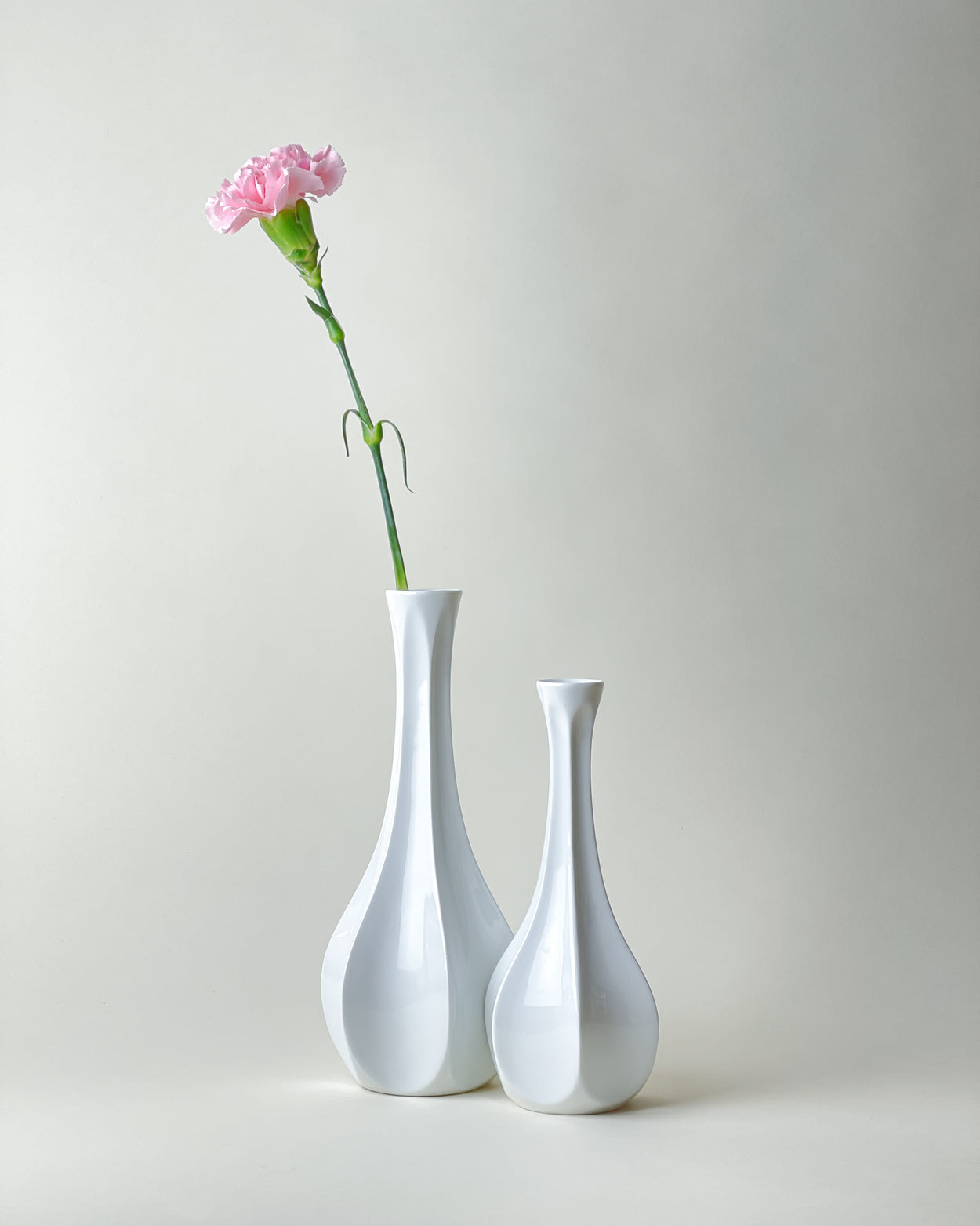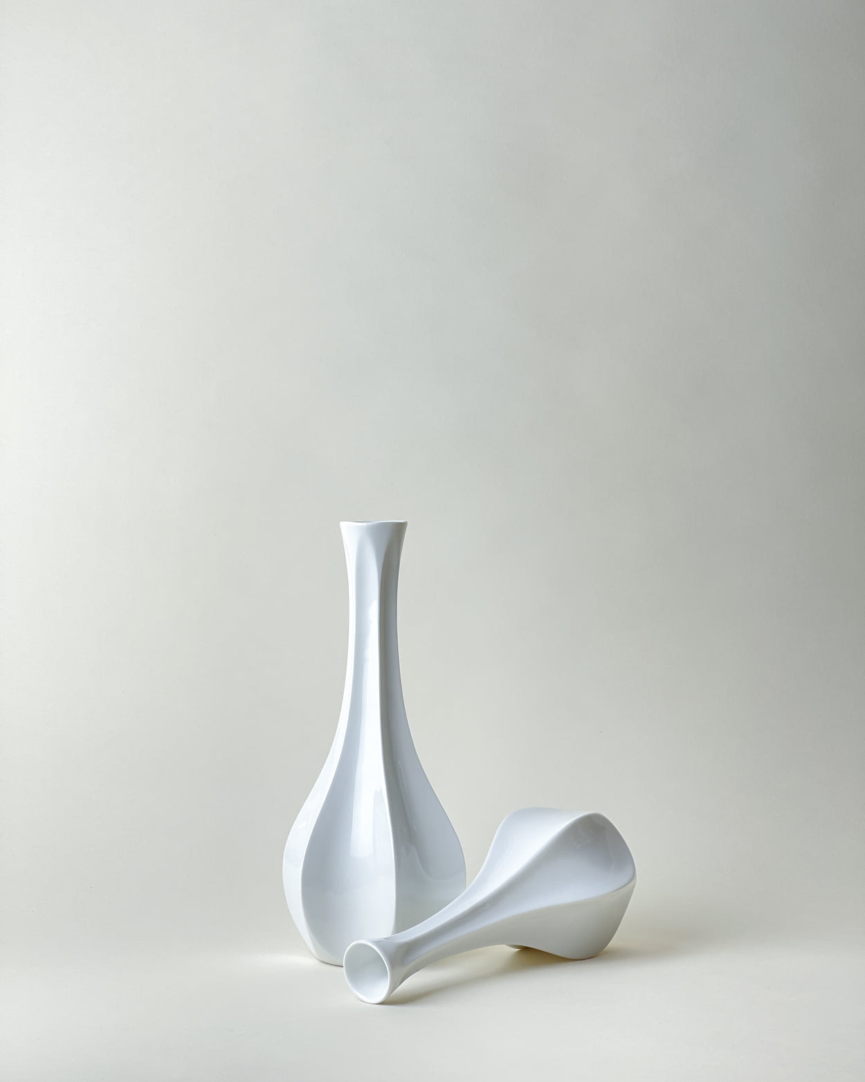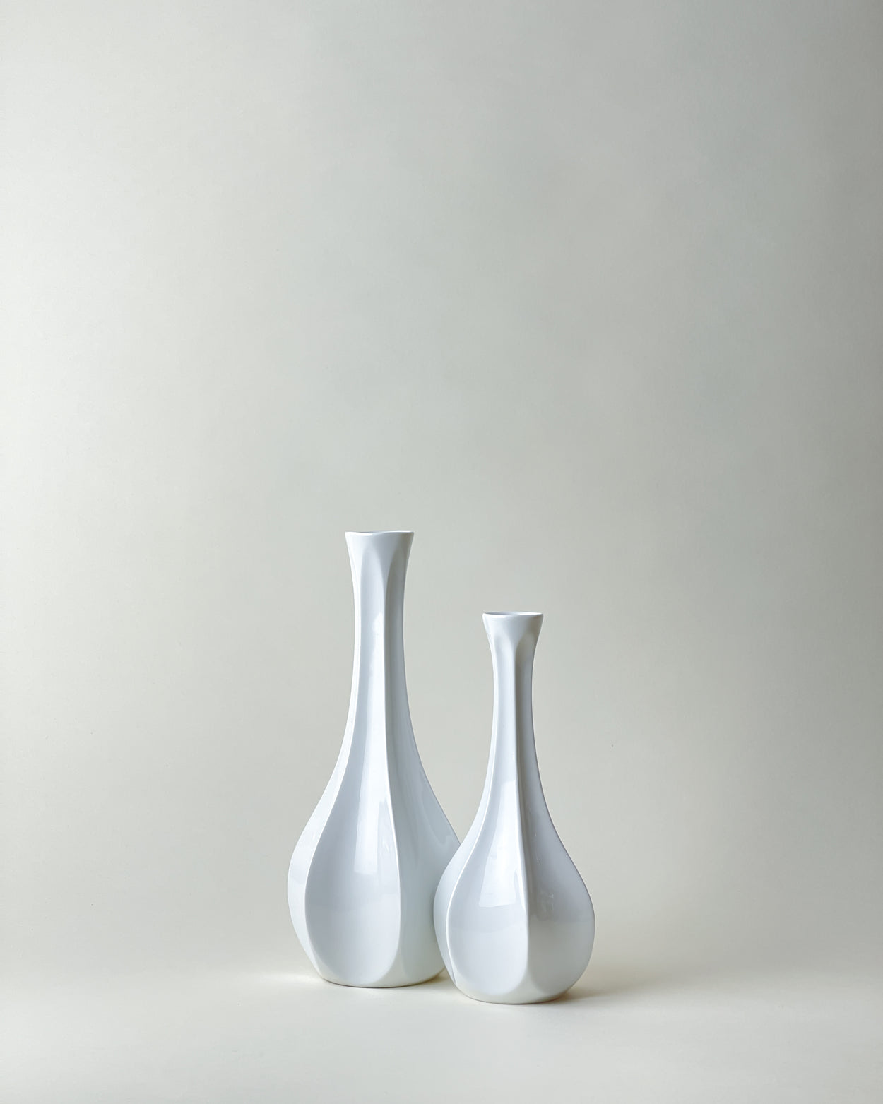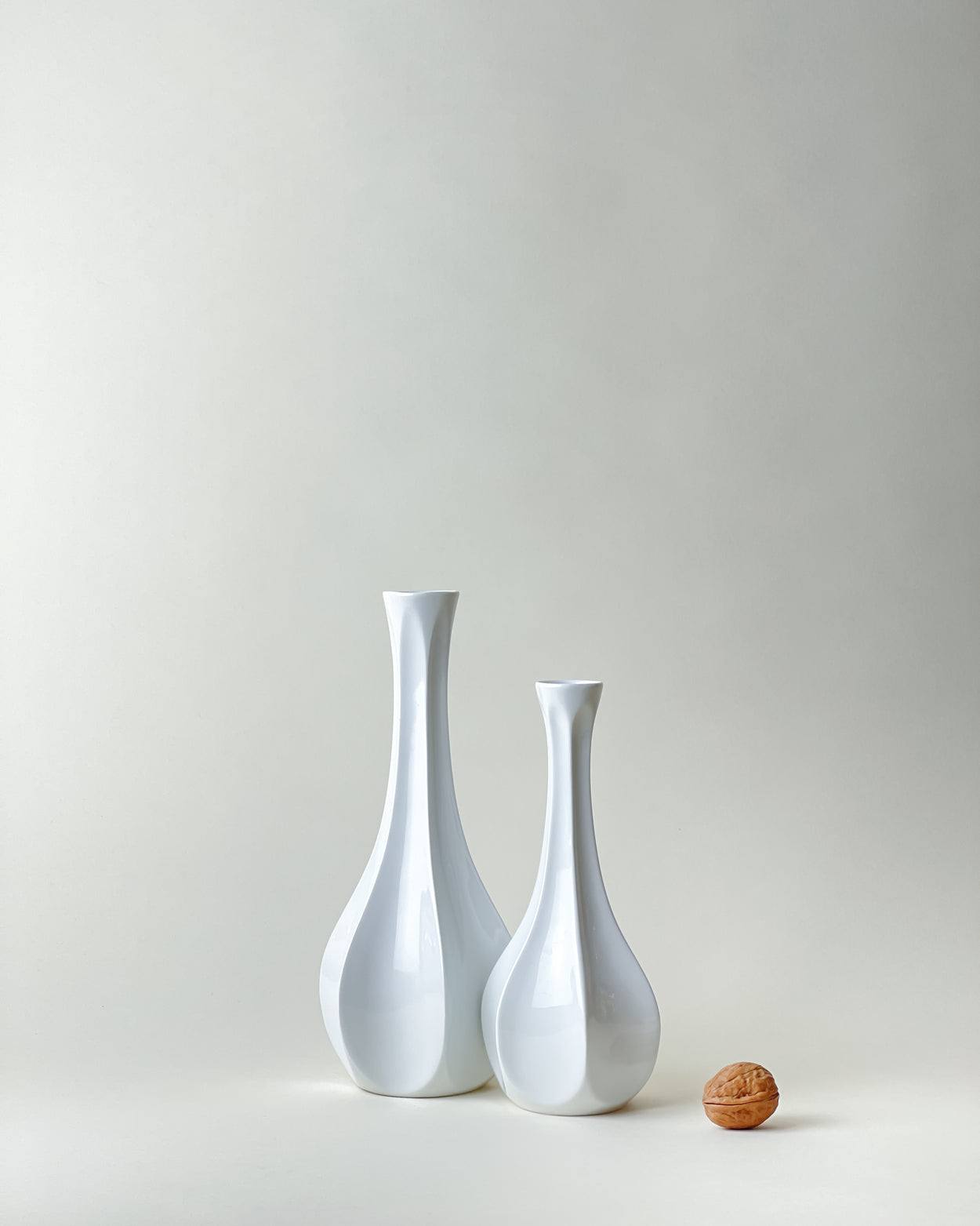 Elegant white porcelain vases. Designed for Gerold Porzellan Bavaria in the 1960s. Wonderful duo of solifleur vases.