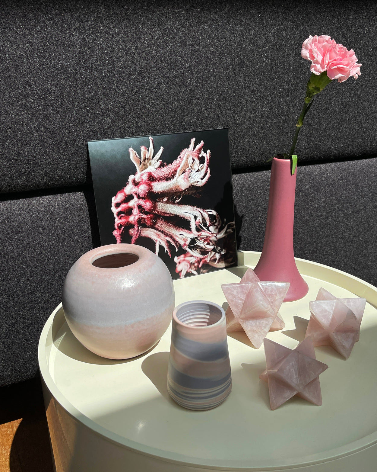 Lovey small vase with pastel swirl pattern.