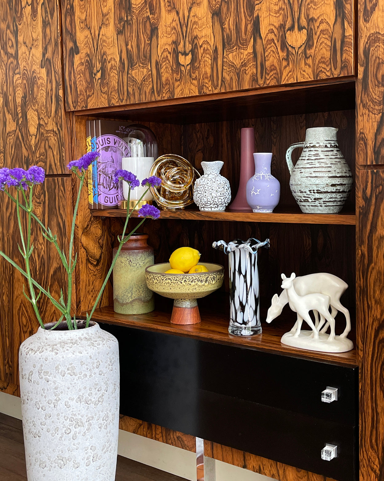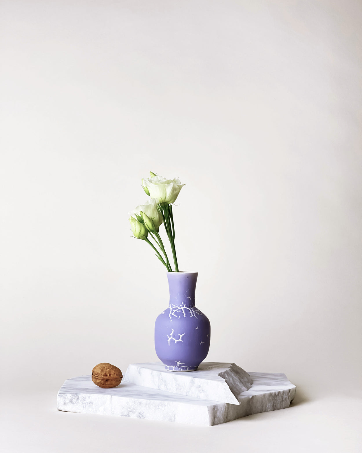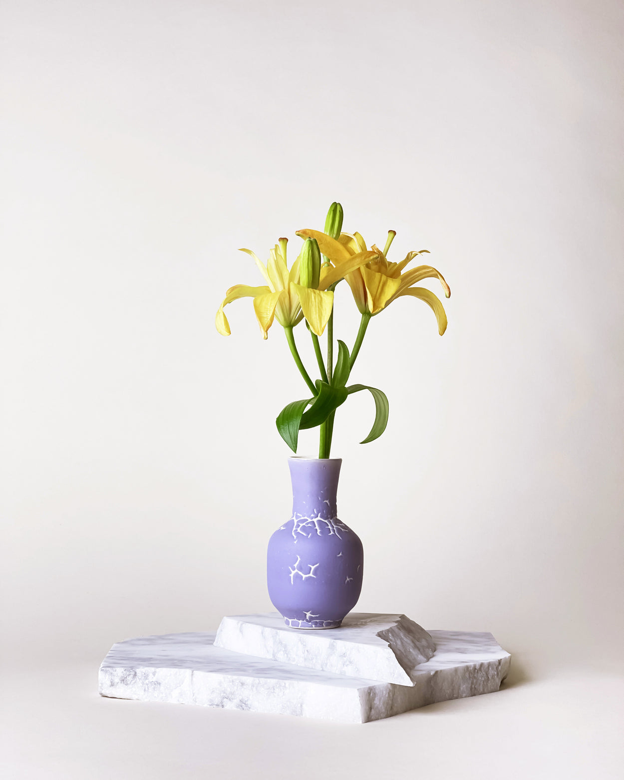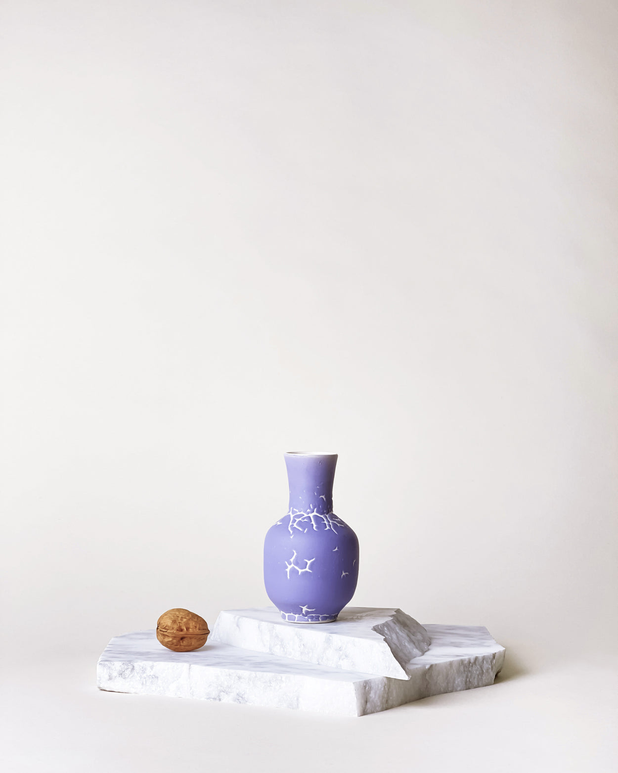 Unique handmade vase with matte lilac glaze and characteristic white cracks. This could very well be your missing touch of colour in your Interior Styling.