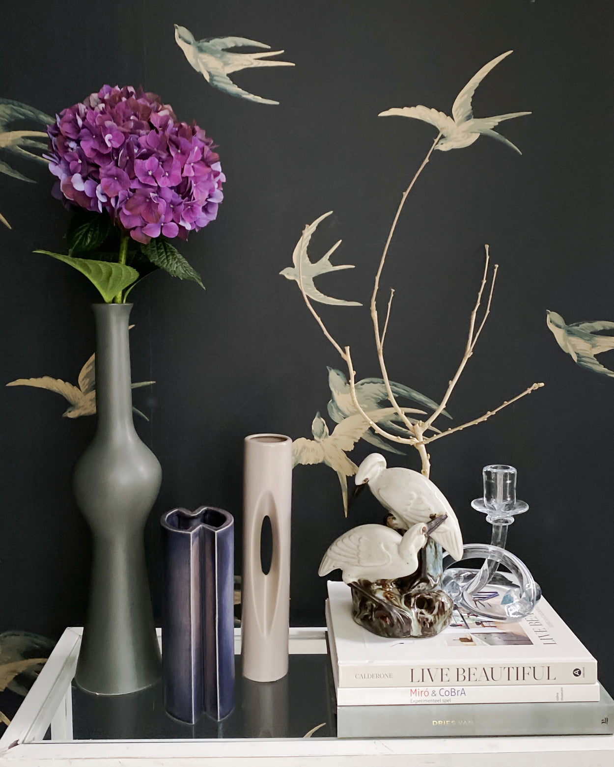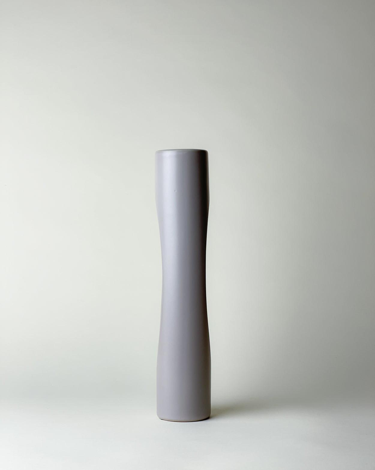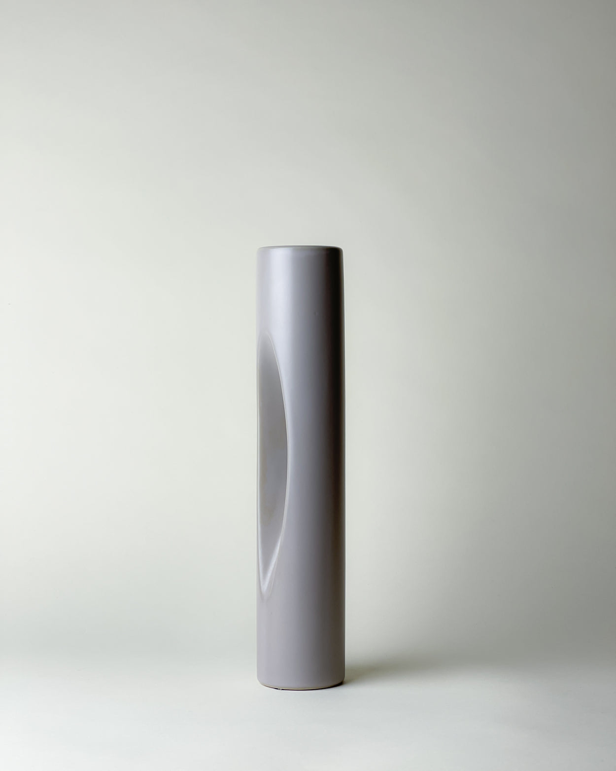 Wonderful tall vase with surprising 'open-eye-space' in smooth warm grey glaze. This unique sculptural decoration piece will elevate your interior instantly... with or without flowers.