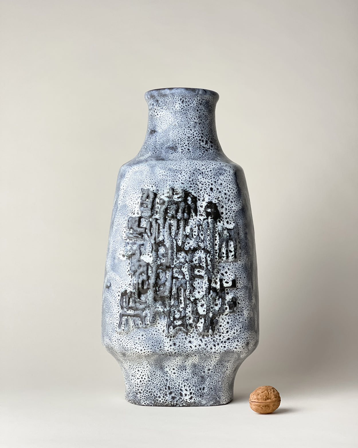 Wonderfully foam glazed Walter Gerhards Design Vase. The specific sculptural shape and neutral tones makes this vase a true object of desire. Made in the 70s in West Germany. Sign on the bottom 730/35.